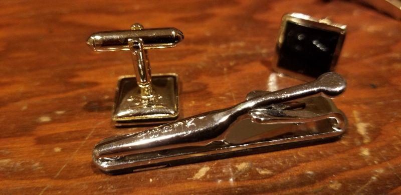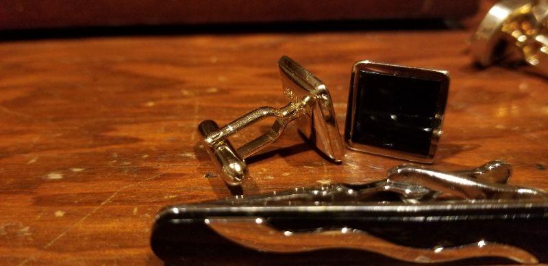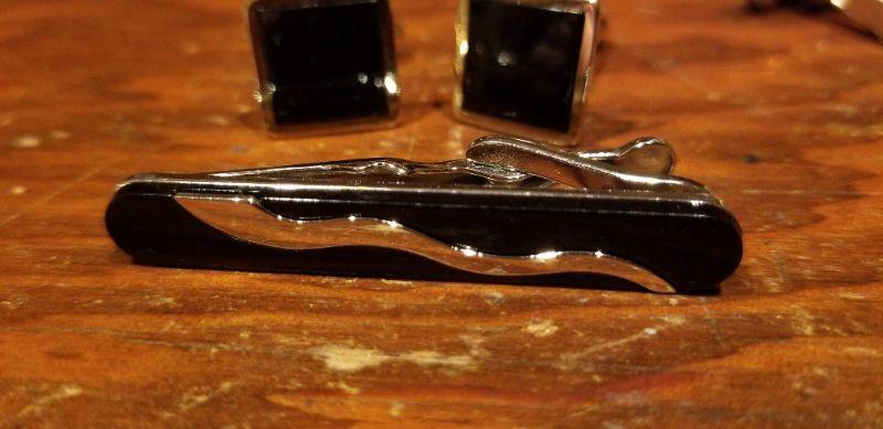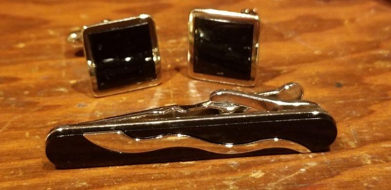 LOT #646: Men's Black Cufflink and Tie bar Dress Set