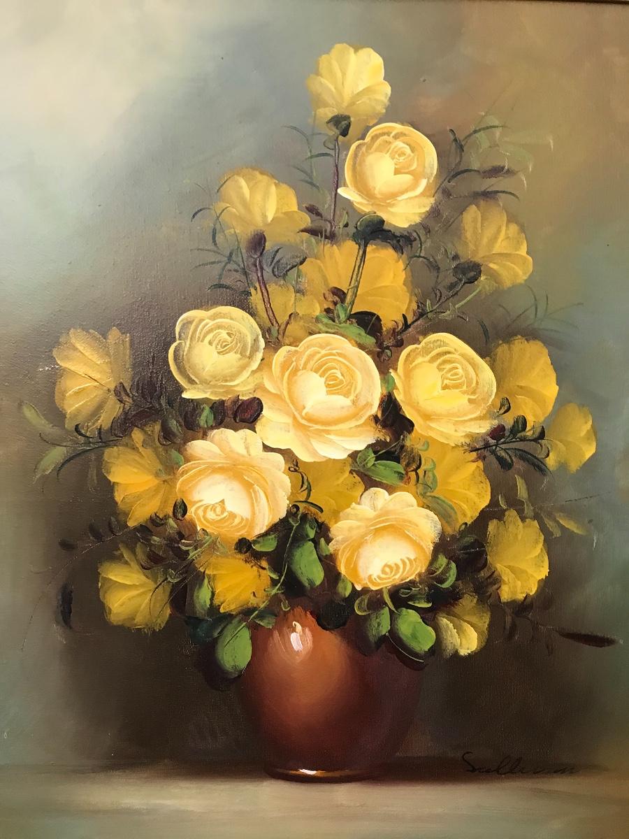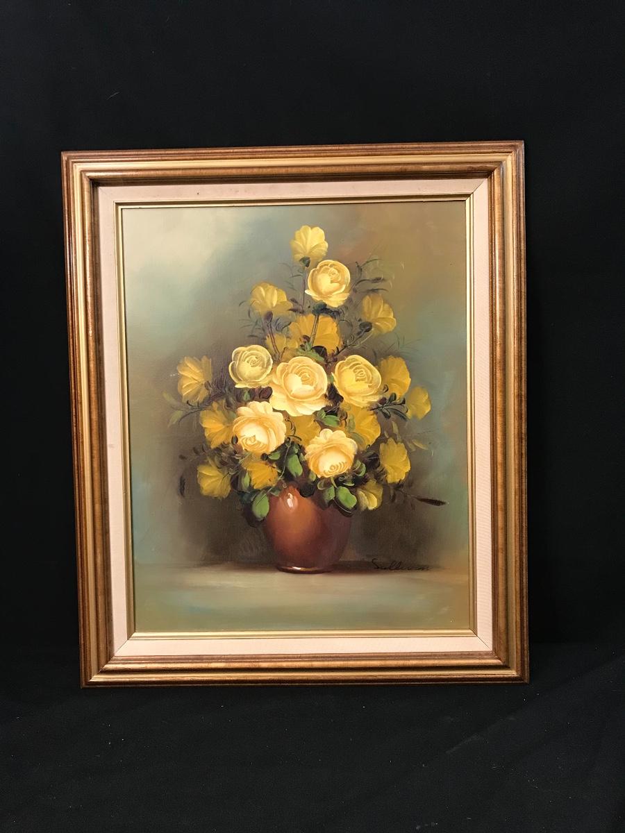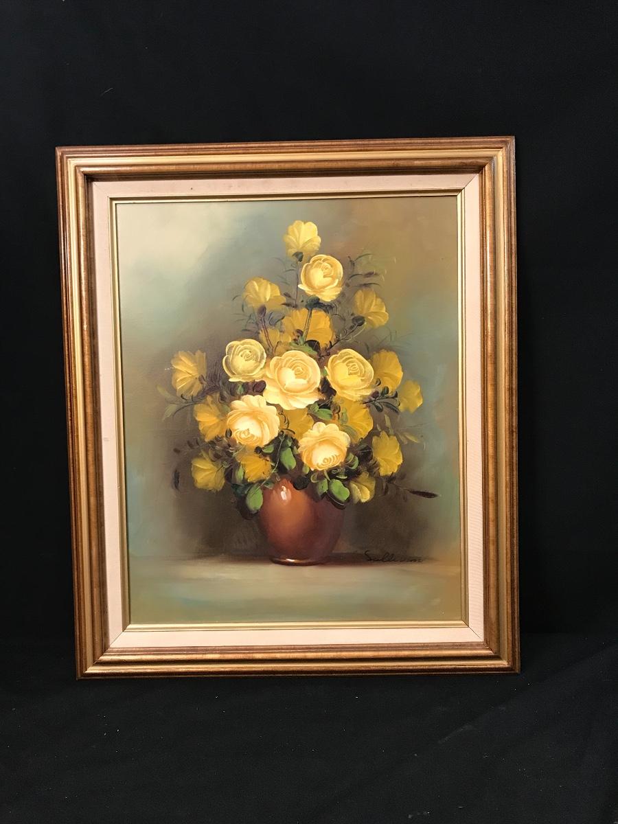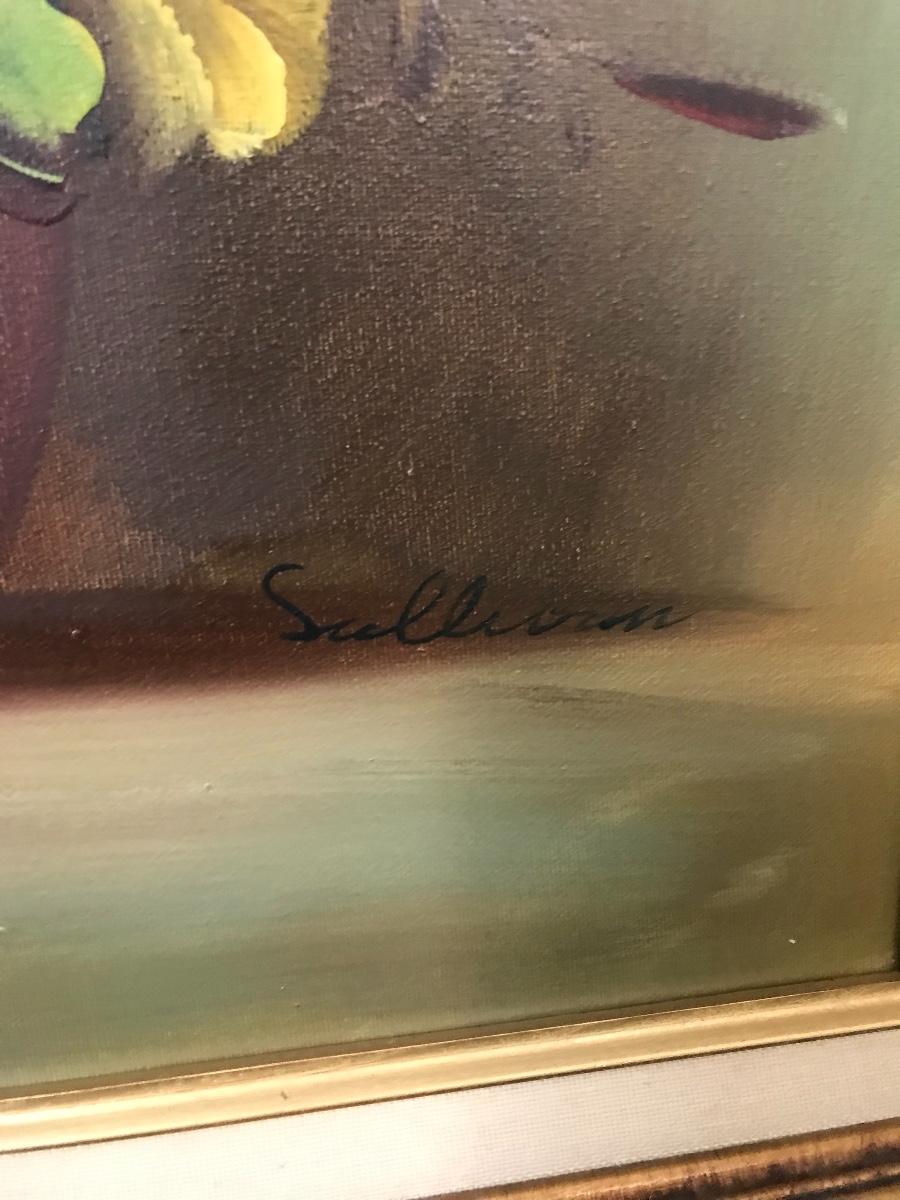 Signed Framed Floral Still Life Canvas Painting. Approximately 21" X 25". Please see all pictures as they are the best representation of the items. The pictures show condition, measurements if taken, and what is included in the lot. Due to the large amount that we photograph and the time frame, we are not always able to take measurements. All items unless noted, are pre-owned and have been used. If you purchased furniture, you must bring help. We do not allow one person to carry large furniture out on their own. Bring help, tools and a truck for the safety of our client’s homes, and your personal safety. Company policy. Thank you.
