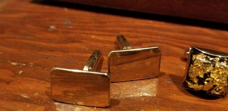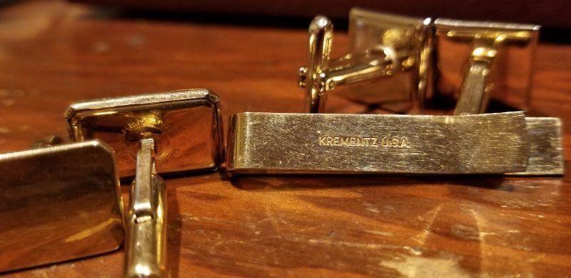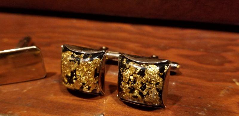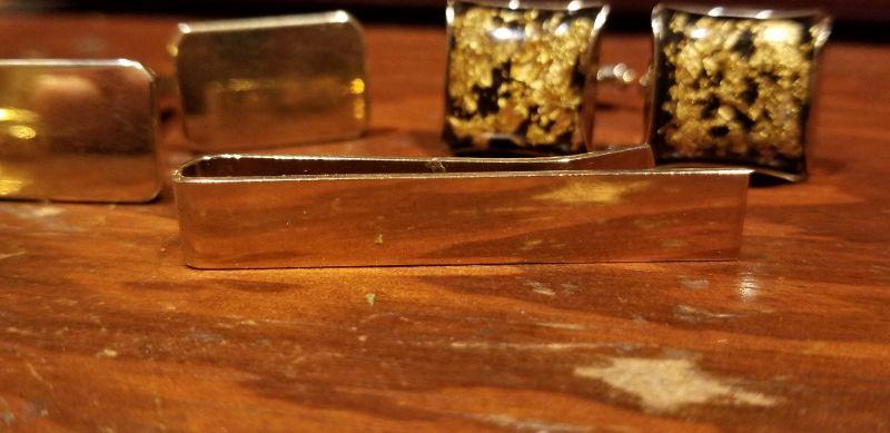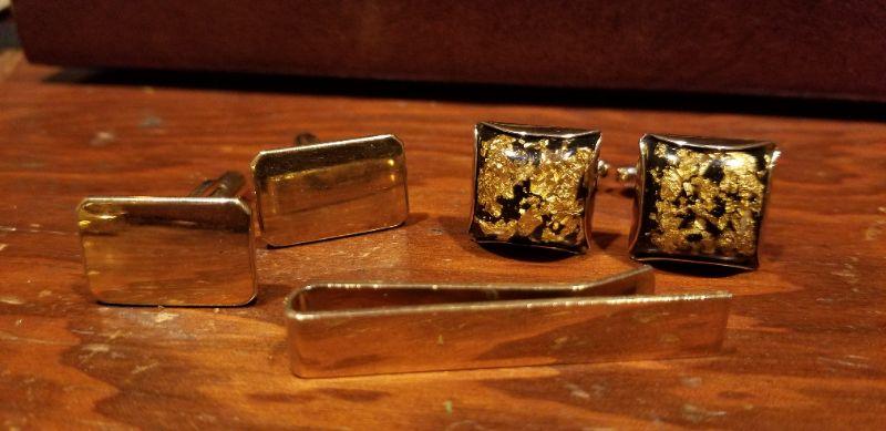 LOT #649: Men's Cufflink and Tie Bar Gold/Black Dress Set