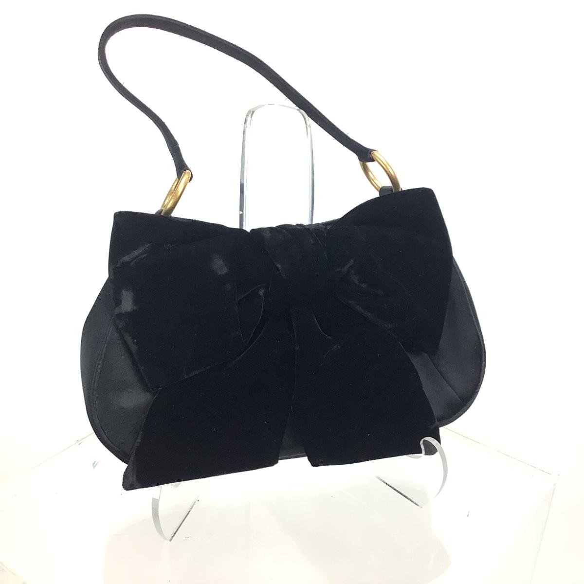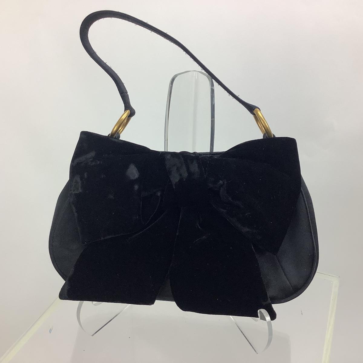 Lot 649 Yves Saint Laurent Black Evening Handbag with Velvet Bow/Gold Hardware