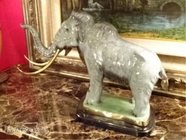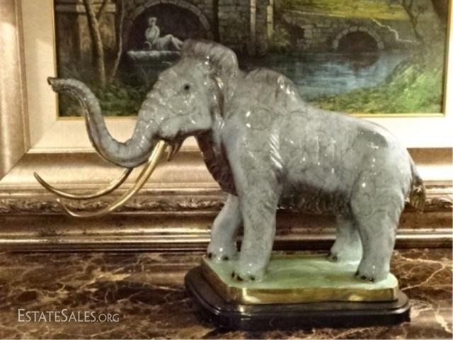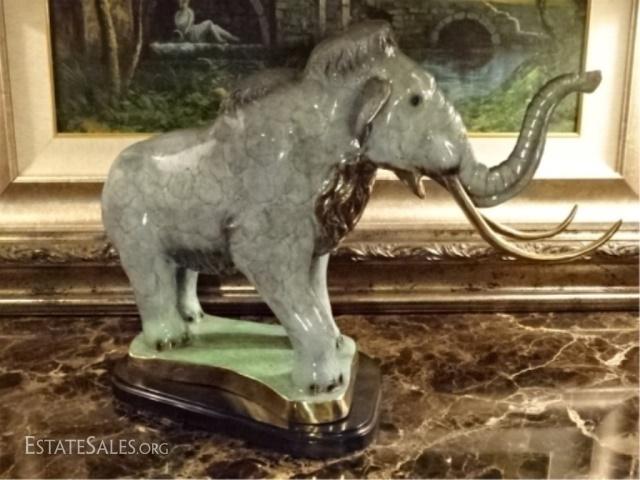 LOT 64B: LARGE PATINATED BRONZE MAMMOTH SCULPTURE