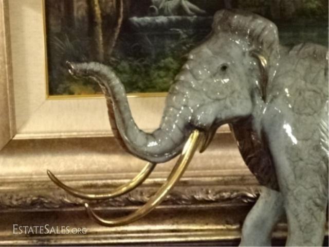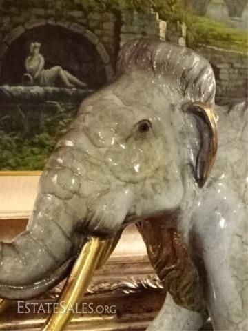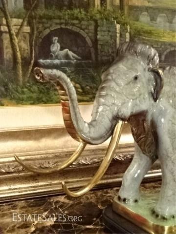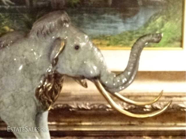 LOT 64B: LARGE PATINATED BRONZE MAMMOTH SCULPTURE ON MARBLE BASE, GOLD GILT ACCENTS, EXCELLENT NEW CONDITION, 17"H X 24"W X 8"D, SKU250.02 H425