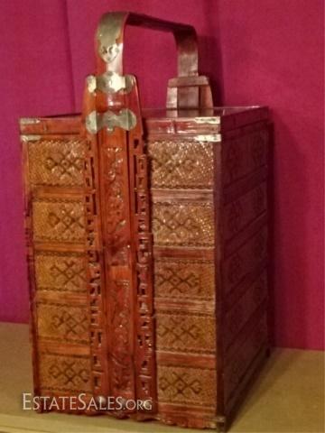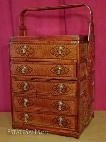 LOT 64D: CHINESE 5 DRAWER WOOD WEDDING BOX