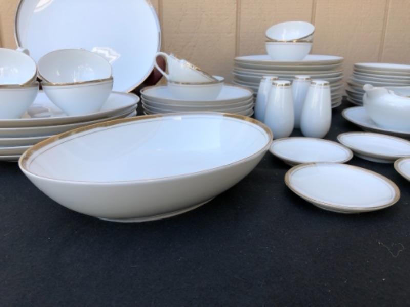 Lot 64L. Vintage Royalton China Co. Translucent Porcelain, “Golden Elegance”, Fine China, Made in Japan, white with gold rims, 1960s, 81 piece Dinner set “” $100