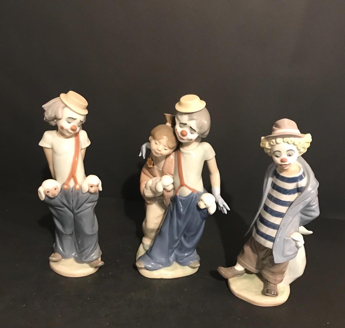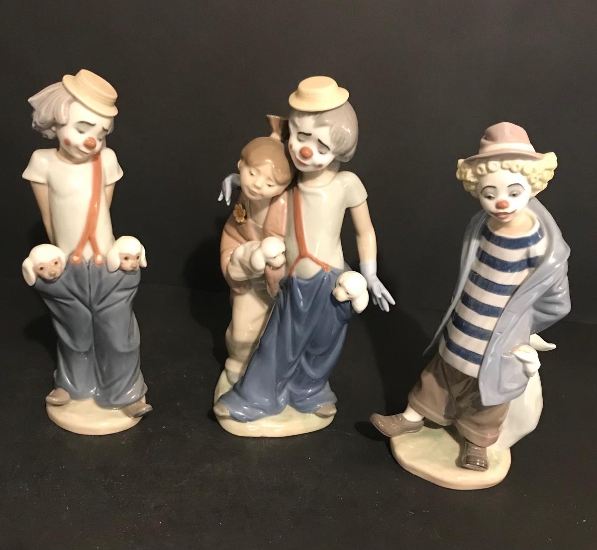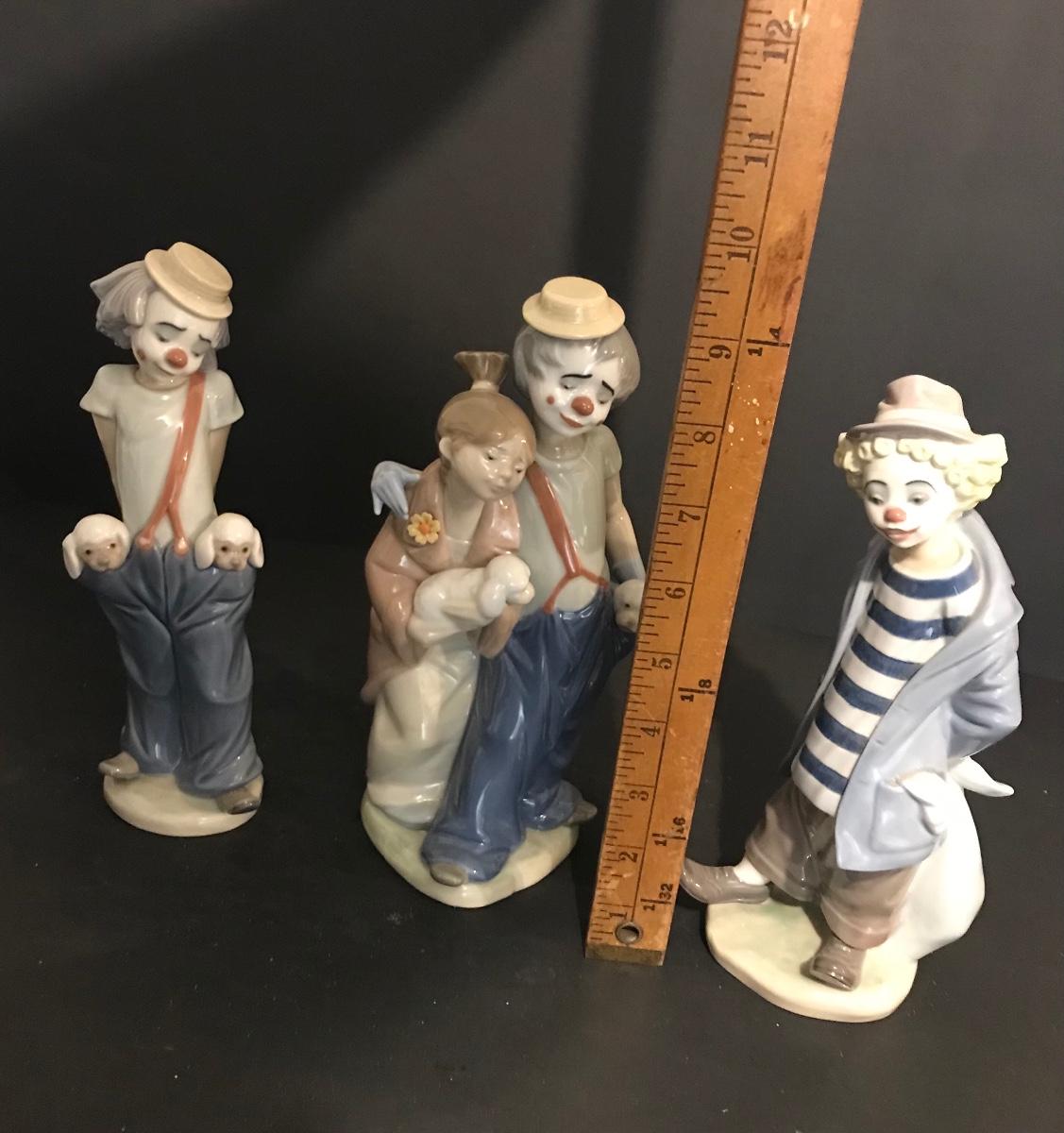 Little Pals #7600 Pals Forever 7686 Little Traveler Hobo Clown #7602. All Lladros are in excellent vintage condition without original boxes, except where noted. All items have been inspected and any damages or imperfections have been photographed and noted to the best of our knowledge and ability. It is the responsibility of the buyer to inspect all pictures, as they are the best representation of the items. The pictures show condition, measurements if taken, and what is included in the lot. Upon pickup, it is the responsibility of the buyer to inspect their items prior to leaving the premises. Once the items leave the premises, there will be no refunds or returns. Buyers are also responsible for bringing their own boxes and packing materials for their items. Thank you.