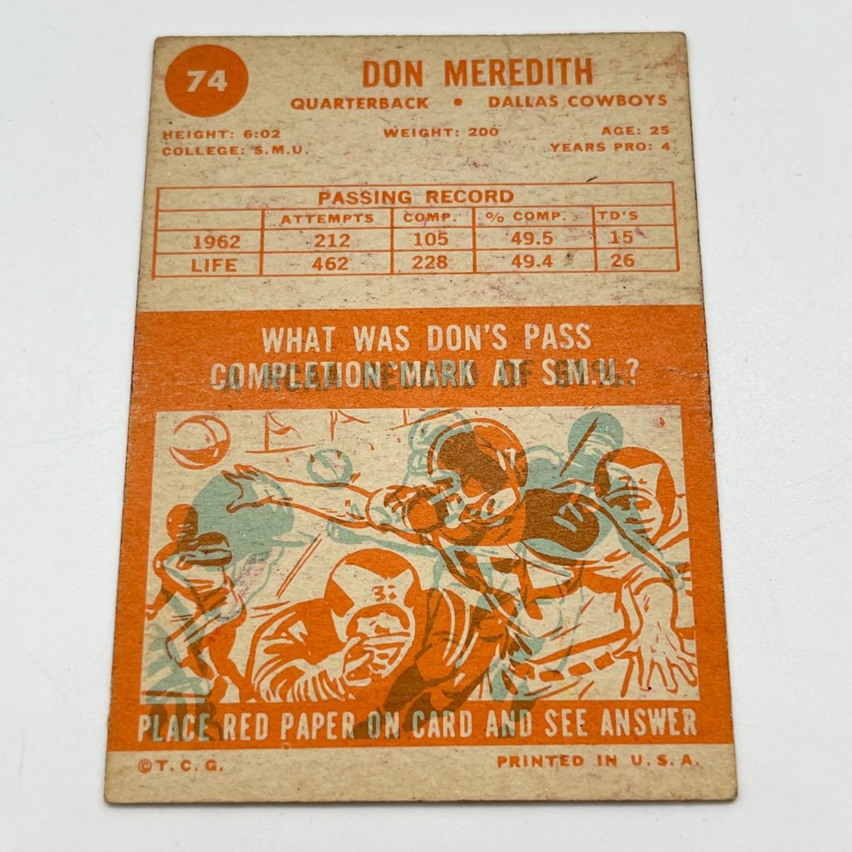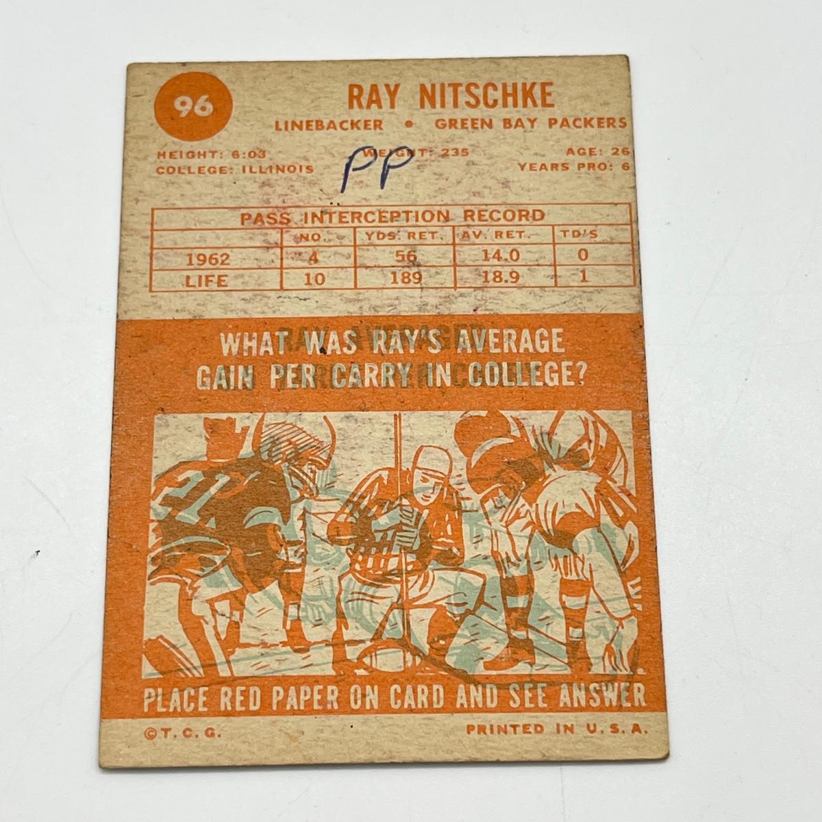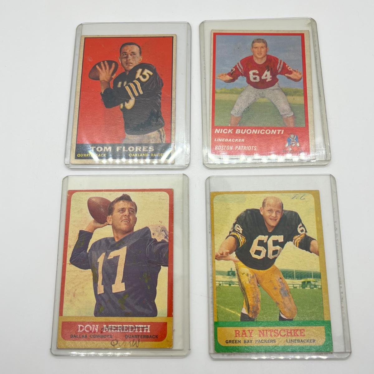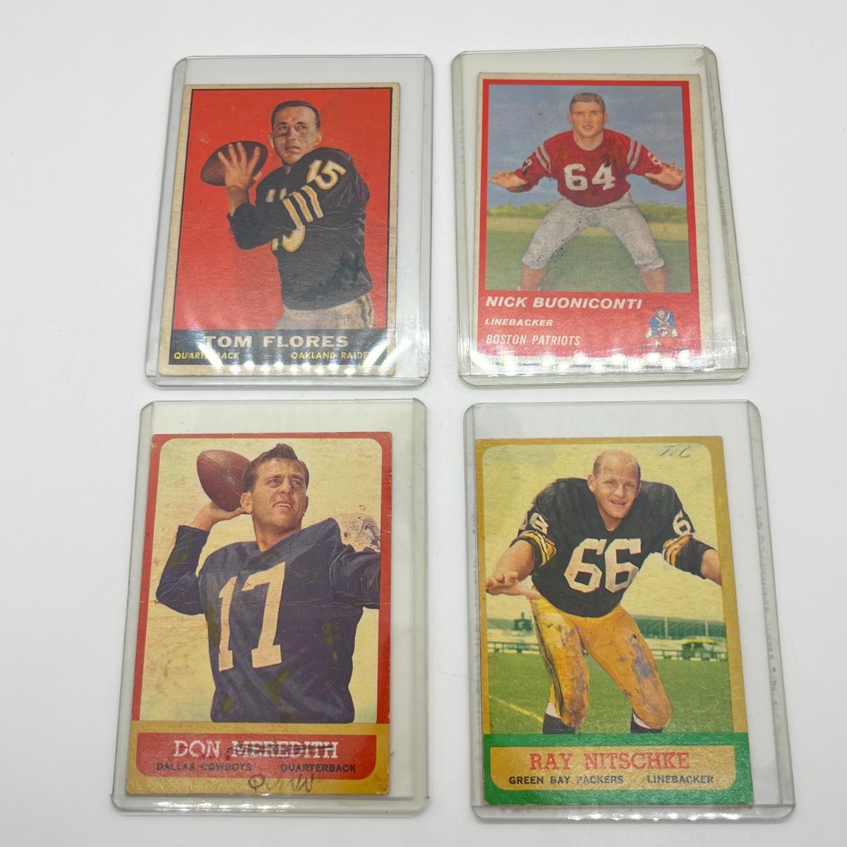 LOT 65: 1960s NFL Football Cards - 1961 Topps Tom Flores Rookie, 1963 Fleer Nick Buoniconti Rookie, 1963 Topps Ray Nitschke and Don Meredith (Lower Grade Cards)