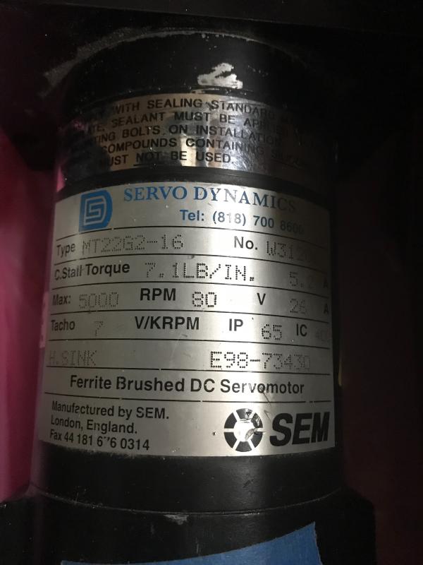 Three Servo Dynamics Motors in lot. Can not verify functionality of these precision motors. They were boxed up but labeled as to which cables went with each unit. Lot is available for local pick up in Asheville, NC only.