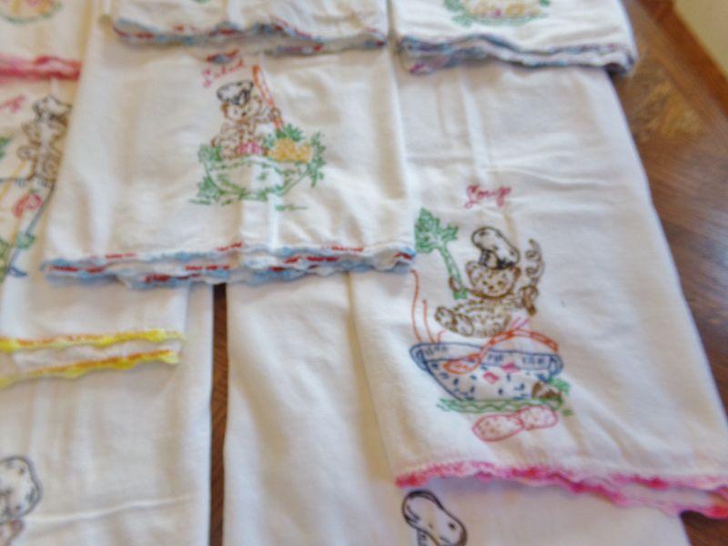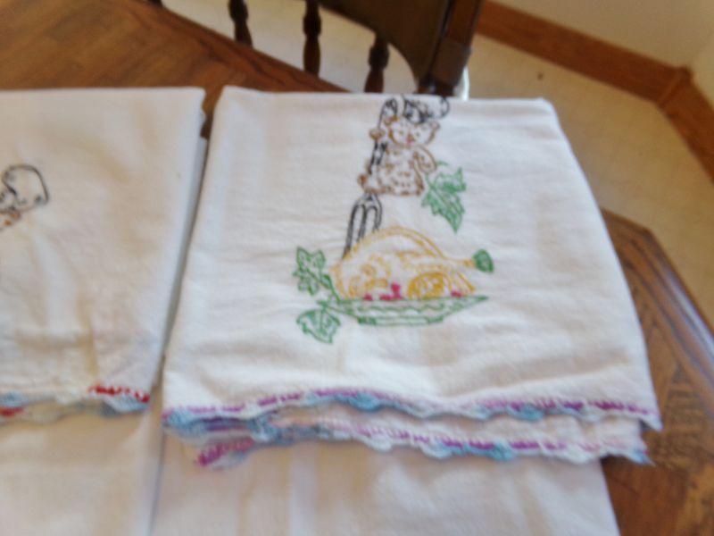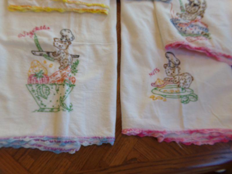 LOT 65  EMBROIDERED DISH TOWELS AND APRONS