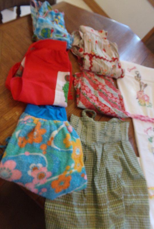 FLOUR SACK DISH TOWELS AND VARIETY OF KITCHEN APRONS