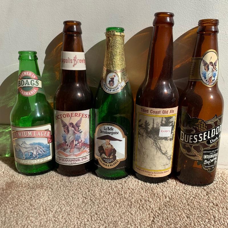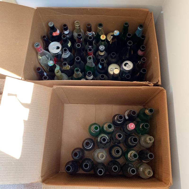 Collection of 60+ empty glass beer bottles (including 4 cans) to add as a fun decoration to your bar or atop your kitchen cabinets! Some are older vintage bottles and others are newer. Collection includes some local bottles as well as bottles from around the country and the world. Local pickup only.