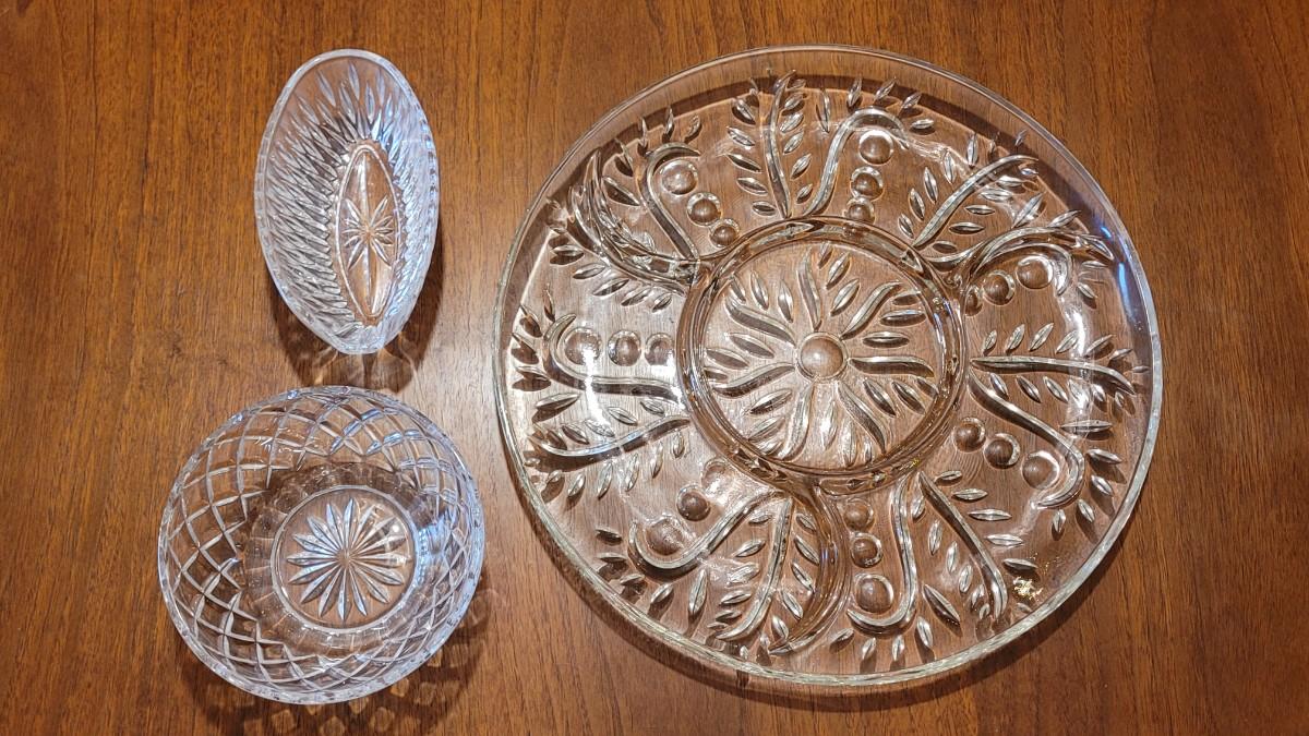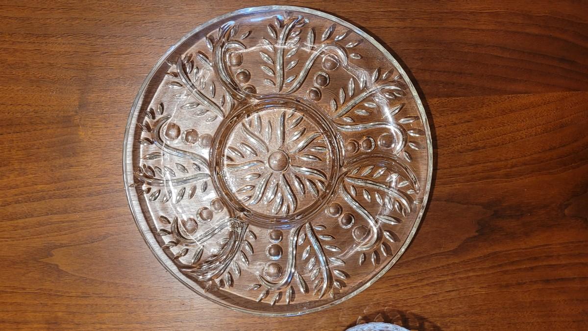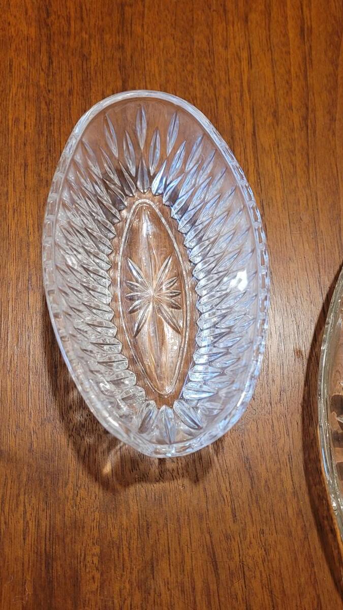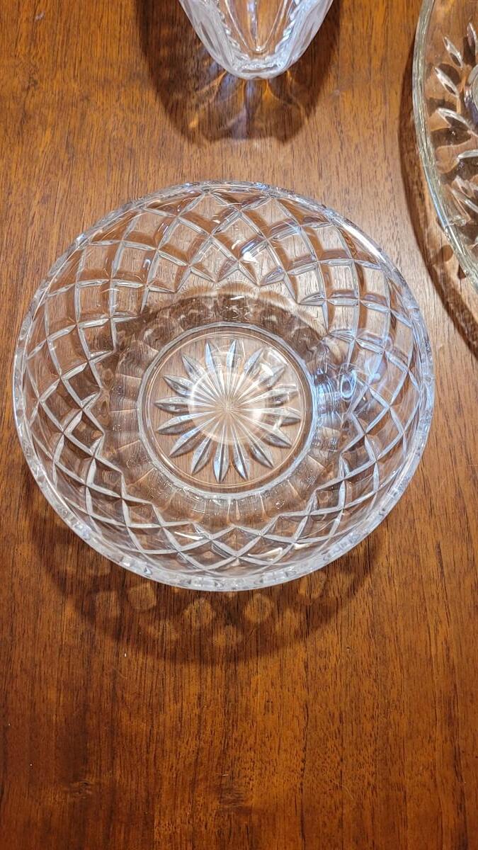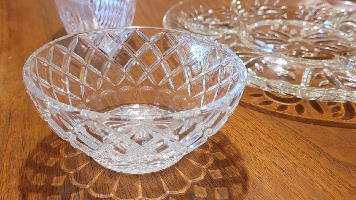 Lot 60: Crystal Spoon Rest, Heavy Crystal Bowl and Hors D'oeuvre Platter (Possibly Indiana Glass)