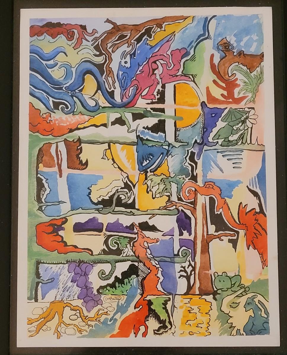 For the past decade the artwork that I have created has been concerned with engaging the viewer. I have always been interested in the conversation that takes place between art and observer. I try to create works of art that invite people to be more than passive viewers and actually engage with the work. Whether I am painting large-scale murals or finely detailed pen and ink drawings this remains true. I create images that allow the viewer to interpret the meaning behind them in their own way, through their own set of values. I am not concerned with convincing someone of my viewpoints and beliefs through my art. For me this is an important part of creating a successful public art project. Over the past five years I have had the pleasure of working on many exterior and interior murals. I have built a great reputation as an artist that can create site-specific work on any type of surface. Painting on wood, metal, masonry, brick and fiberglass I have learned how to prepare and finish murals to last for decades. Not only do I have the ability to work on many surfaces but I also work in many different styles. My art overwhelms and moves the eye with a barrage of symbols and illustrations. These images are broken into fragments and achieve a balance between loose abstractions and highly detailed images. Every piece of work will look drastically different when viewed from close up and afar. I want people to spend that extra minute with my art and engage in the visual conversation that art creates.