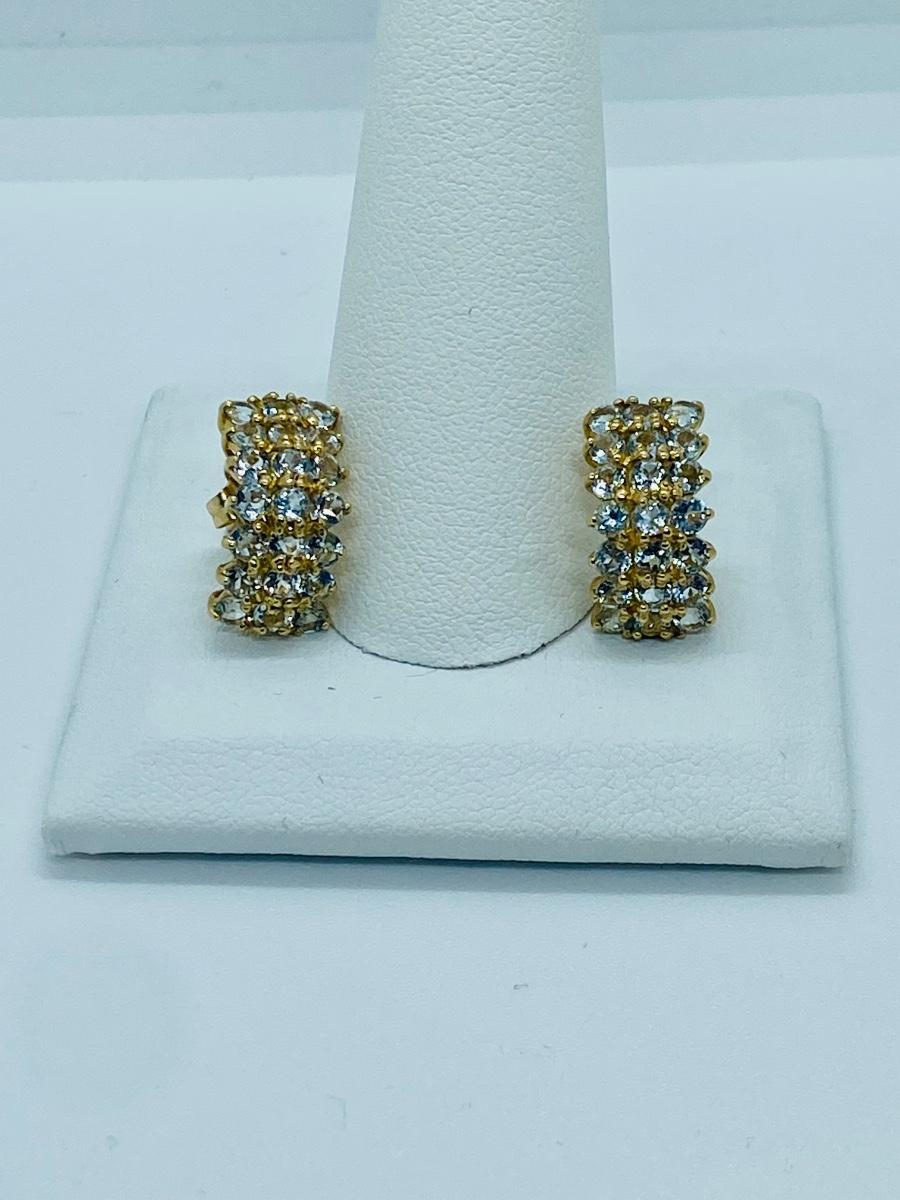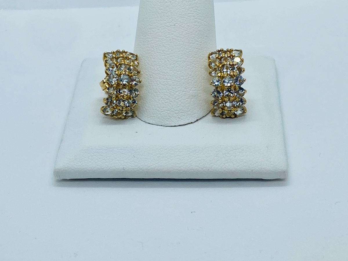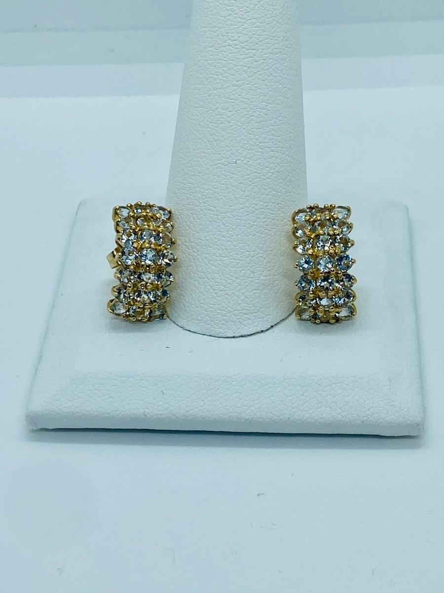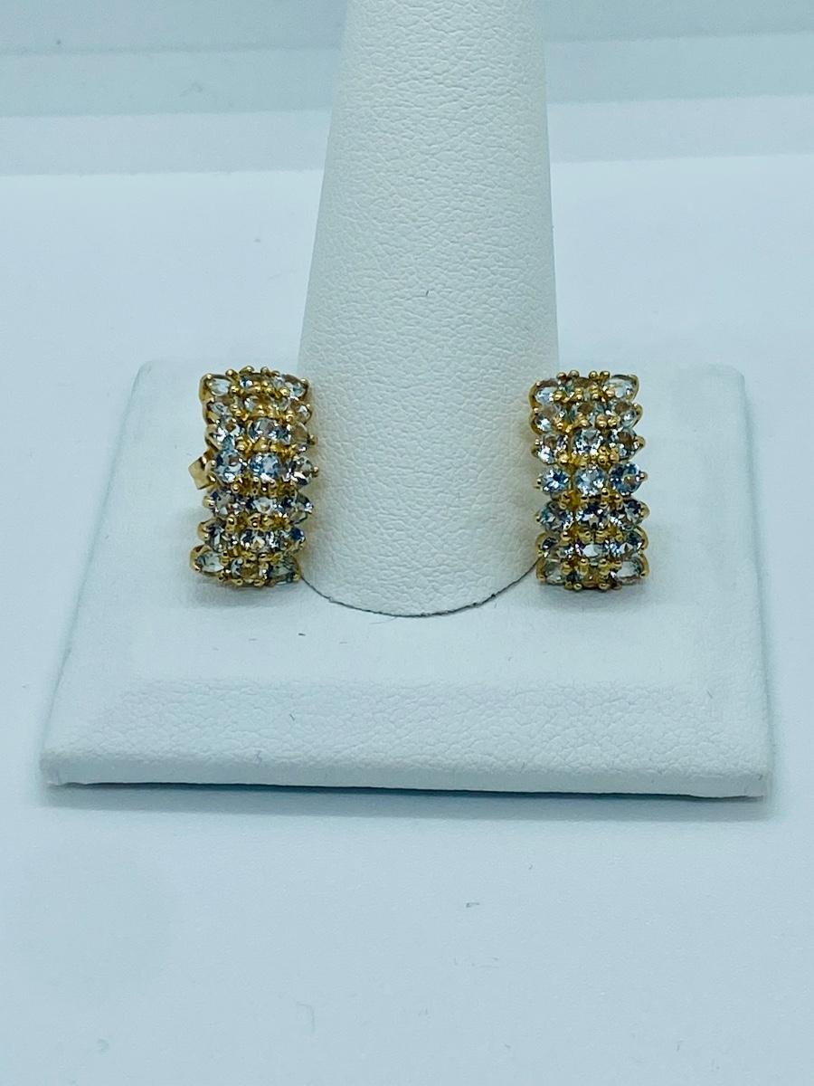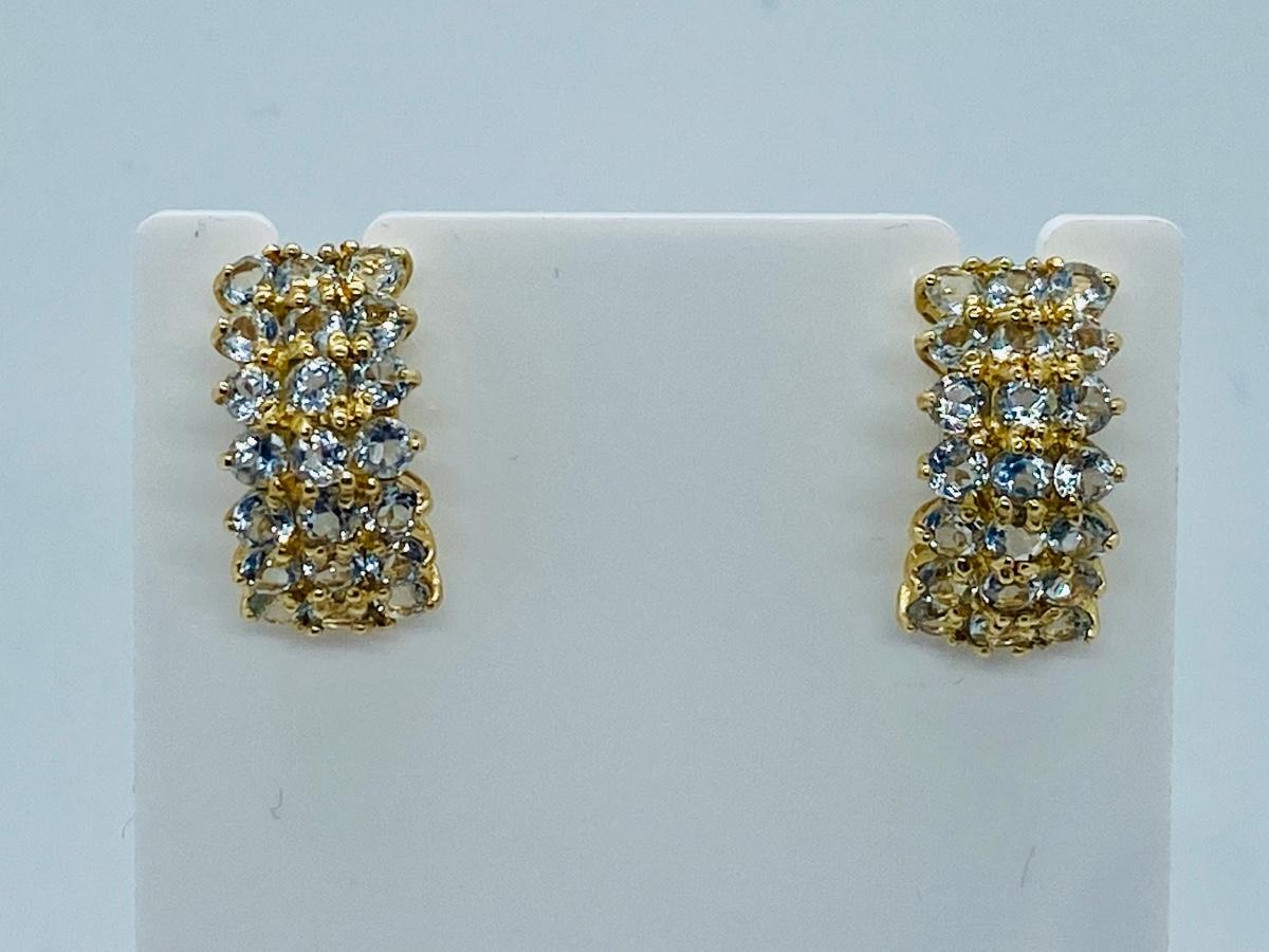 Lot 65: 14k CZ Aquamarine Cluster Pierced Earrings