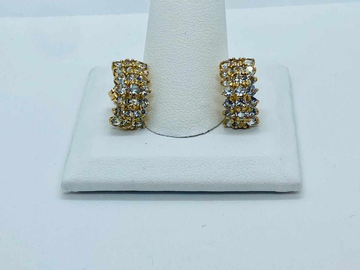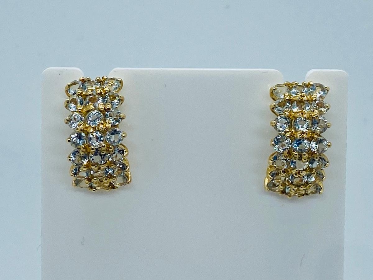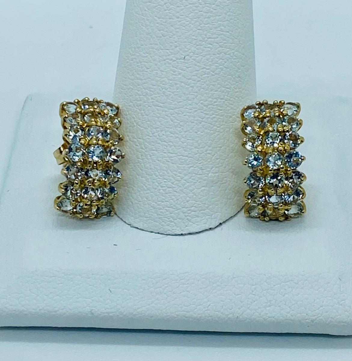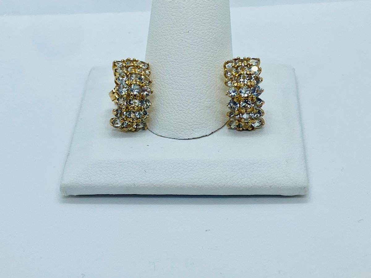 Lot 65: 14k CZ Aquamarine Cluster Pierced Earrings