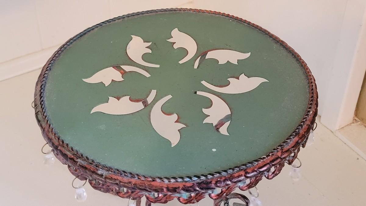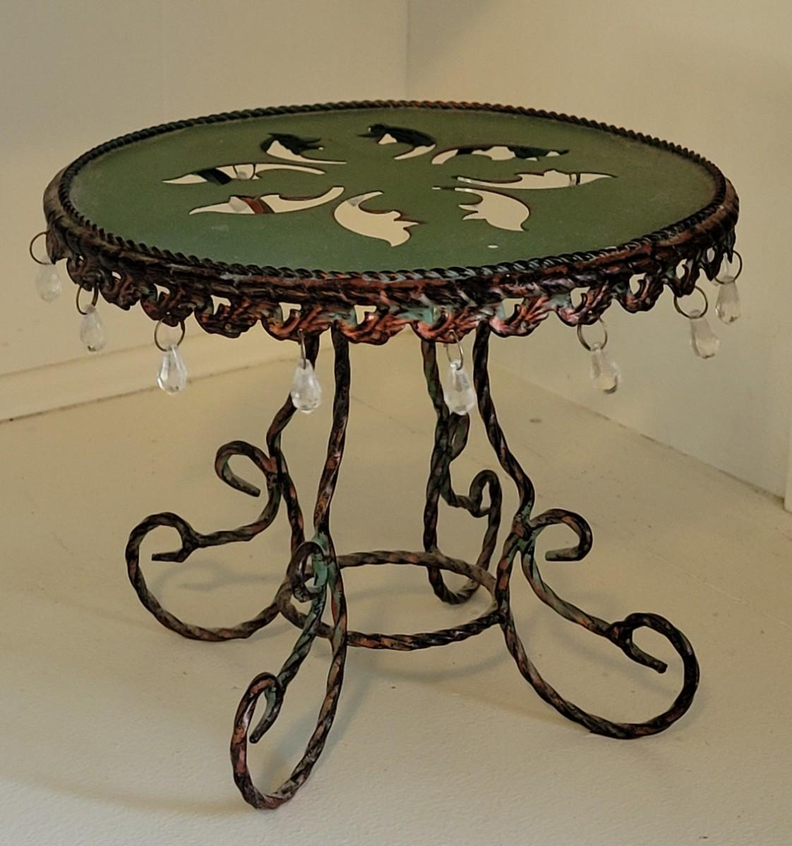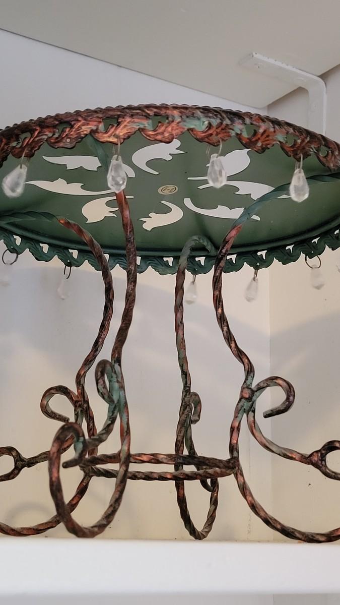 Lot 65: Vintage Green Metal and Crystal Plant or Art Stand
