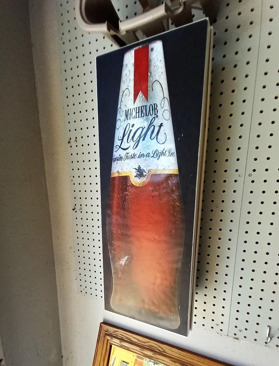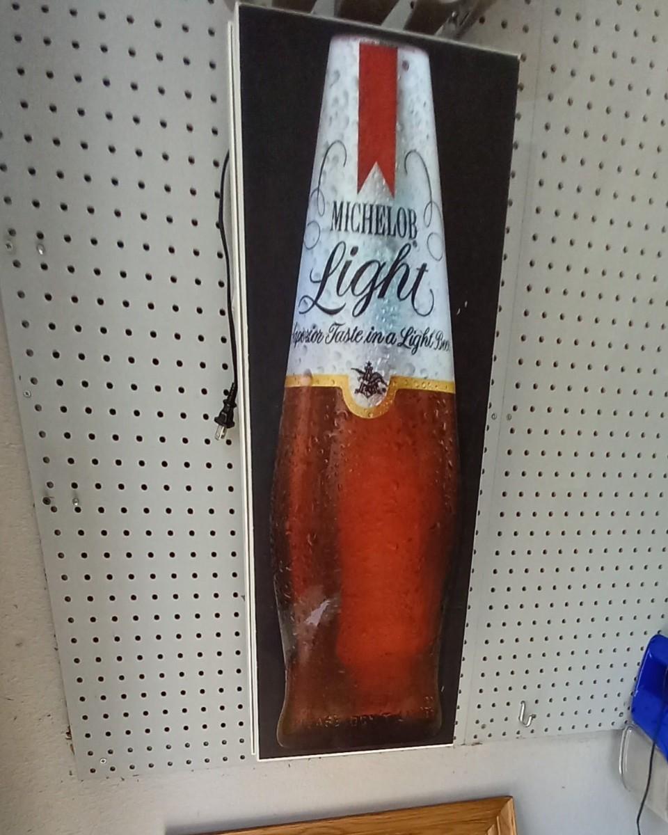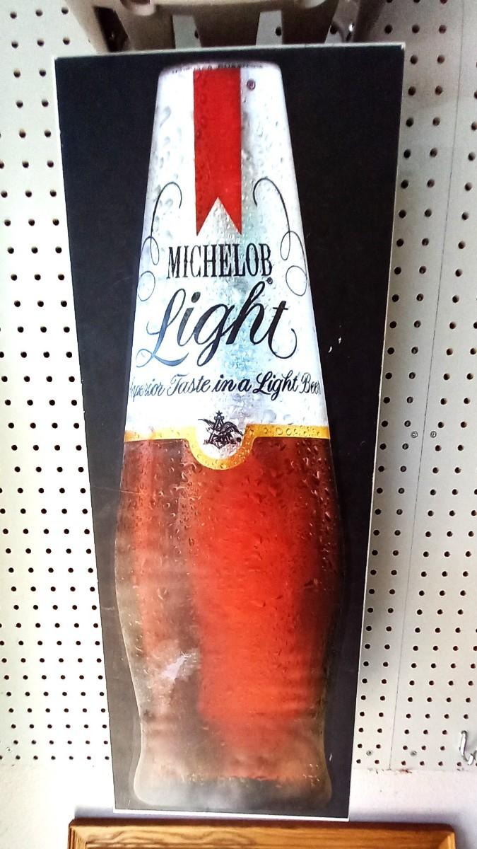 LIGHTUP MICHELOB LIGHT SIGN & FRAMED ERLANGER MIRROR 21x15