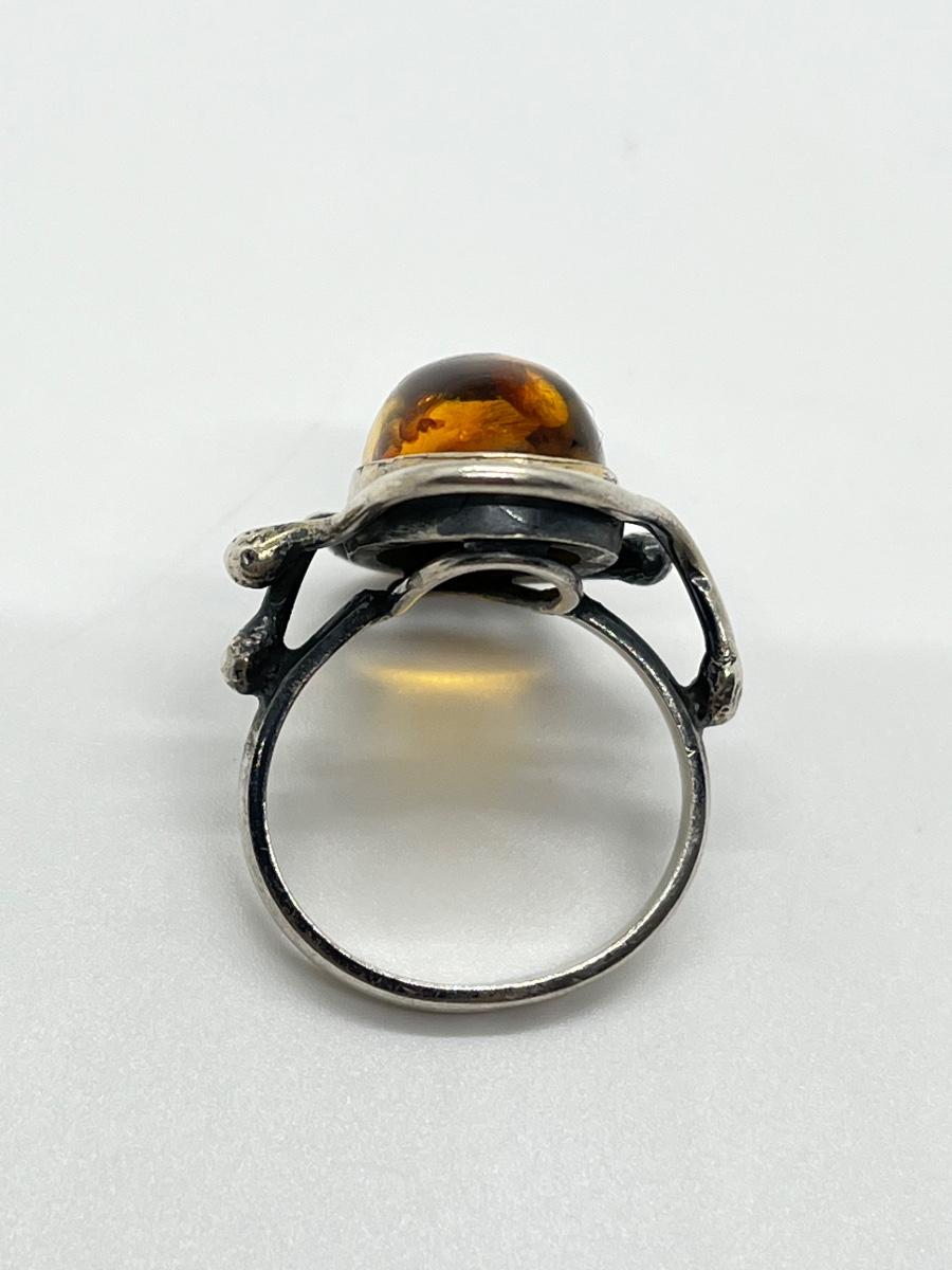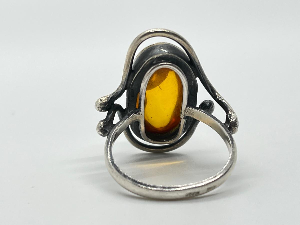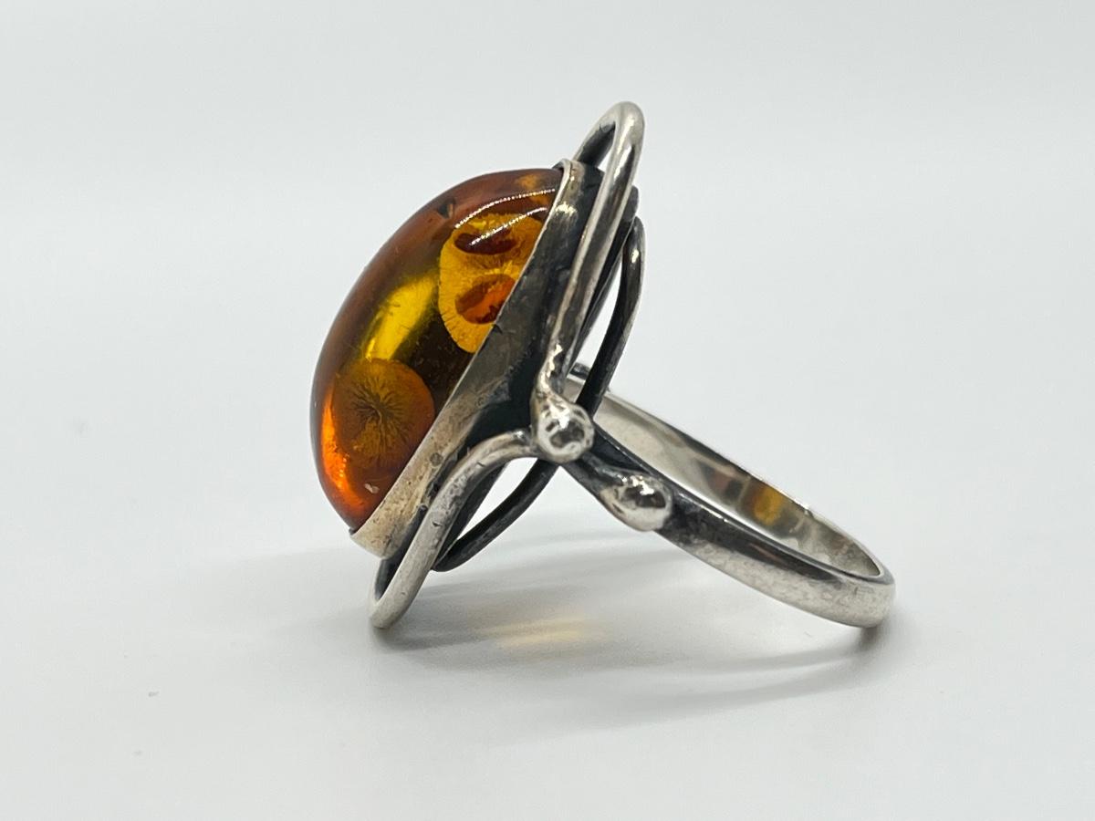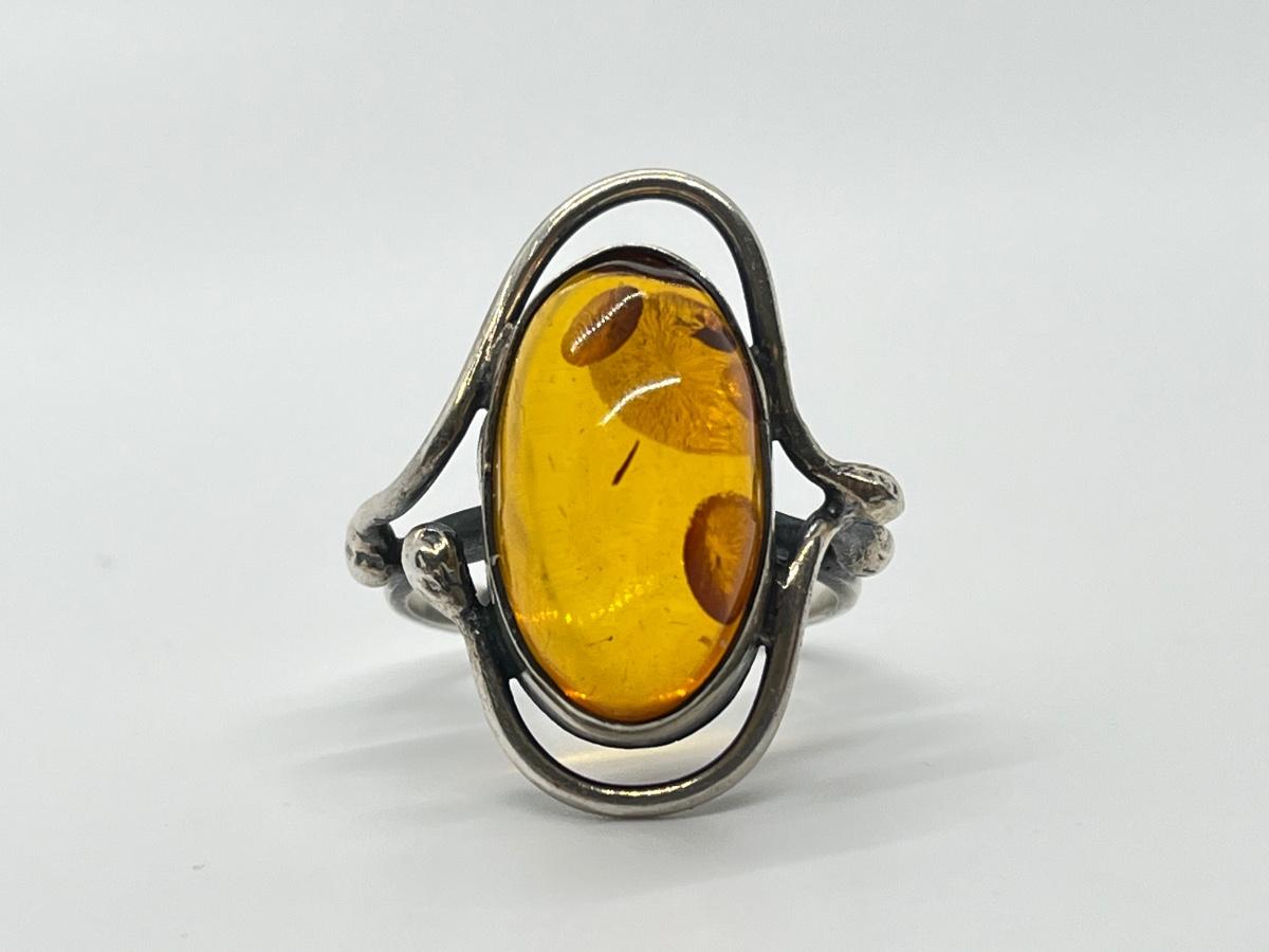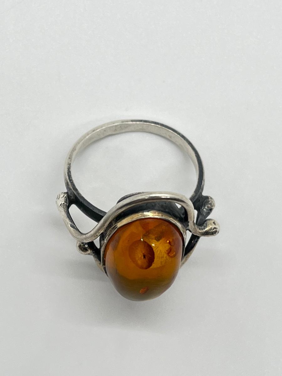 LOT 65: Sterling Silver and Amber Ring - Size 10