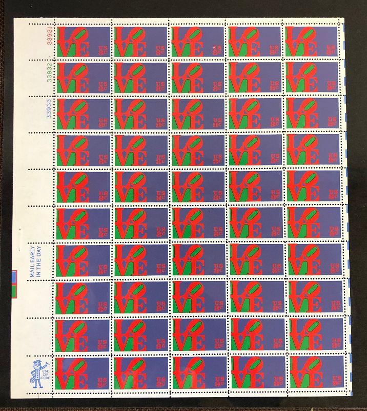 Sheet Complete 50 Un-used LOVE Stamps . Coins, stamps and jewelry ship at $3.95 for first item and $1 for each additional item.