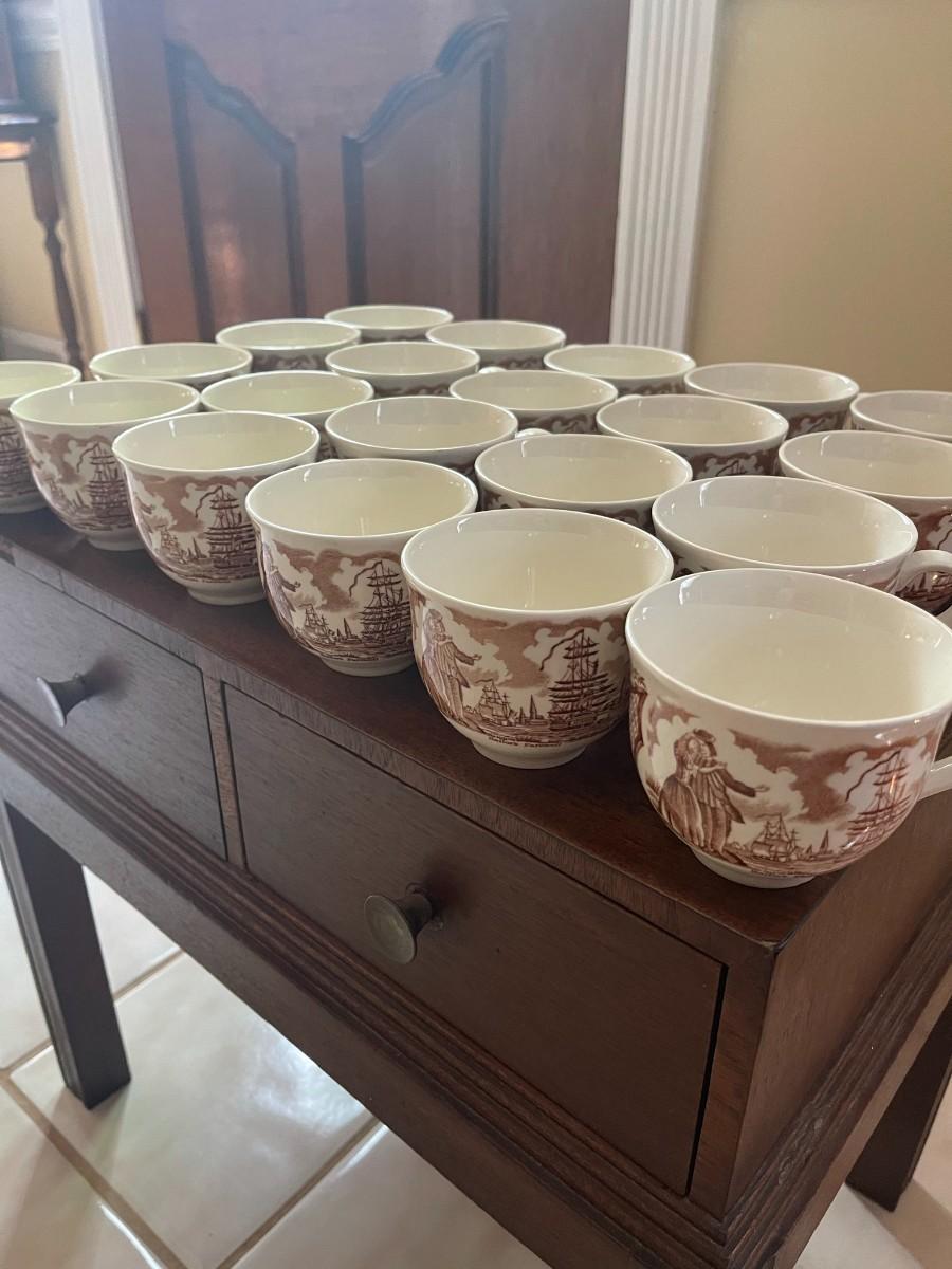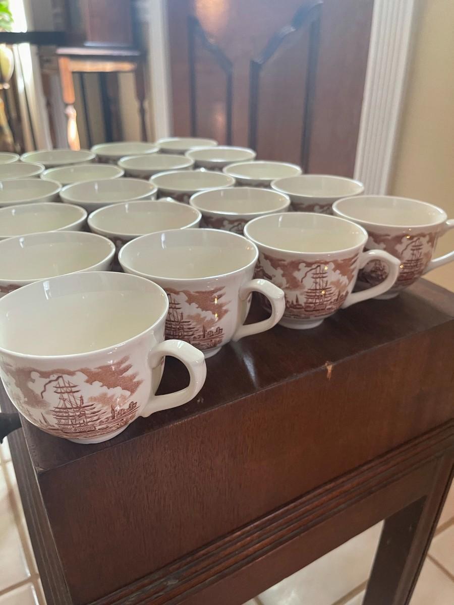 LOT 84 - Tea Cups and Saucers, Alfred Meakin, Fair Winds, 21 tea cups/26 saucers