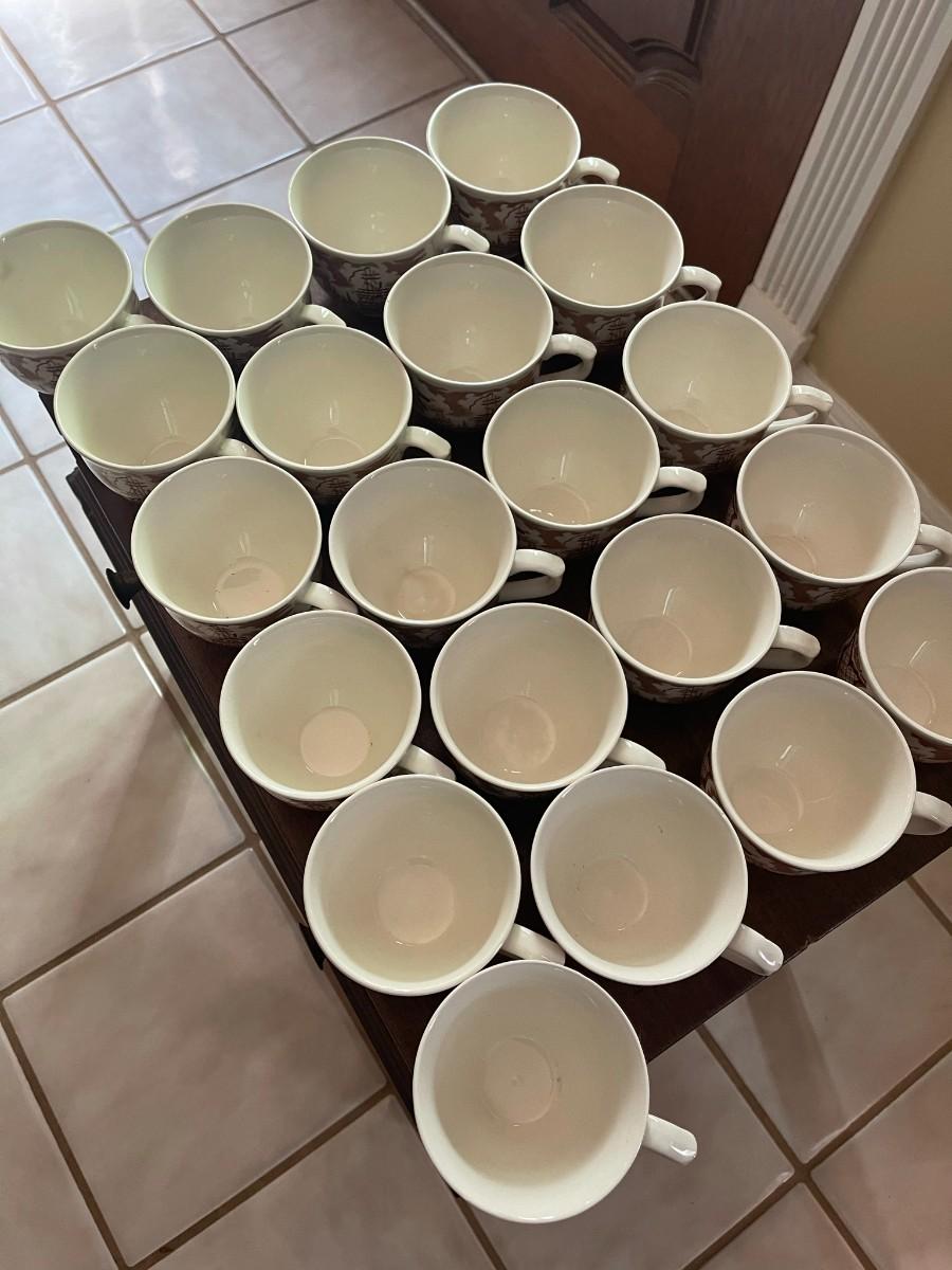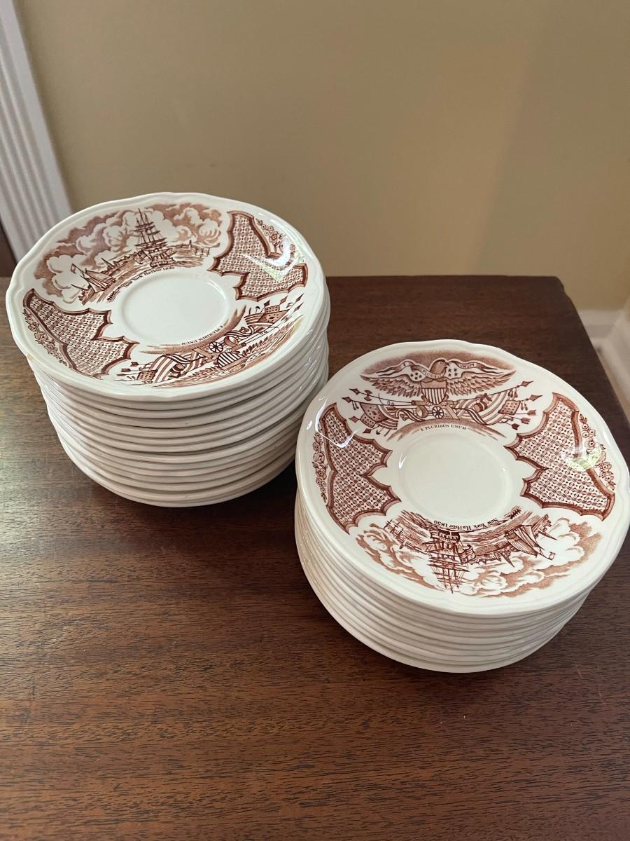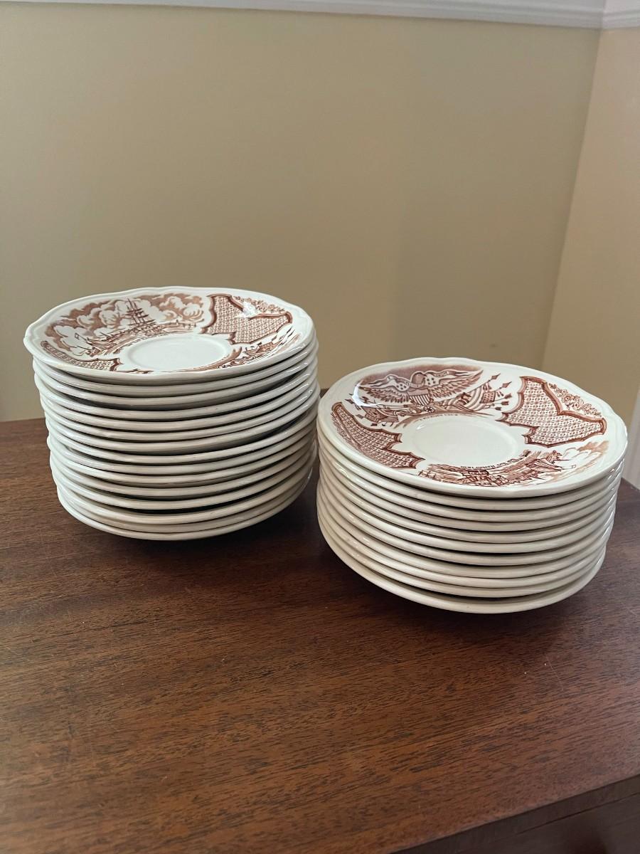 26 total plates. Measures: 5 1/2" Diameter (the saucer stack measures approx. 4" H)