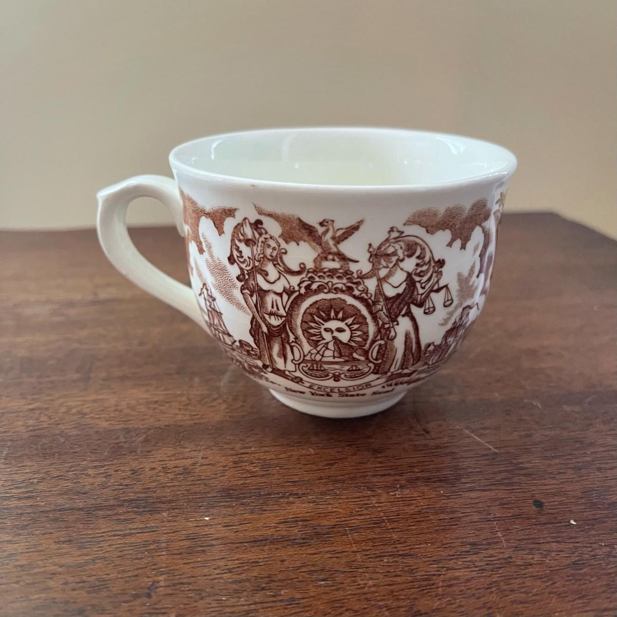 The cup has Sailors farewell and New York State Seal.