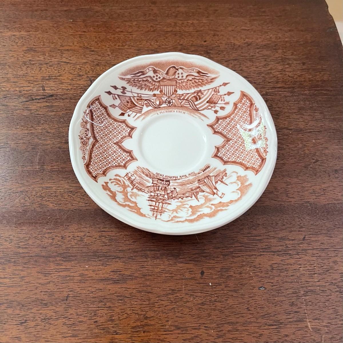 The saucer has New York harbor 1830 & E Pluribus unum.
