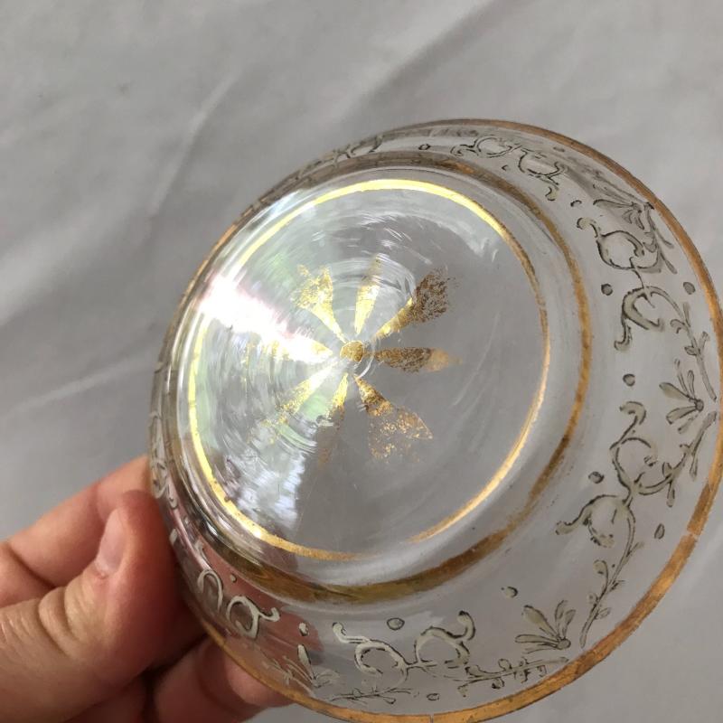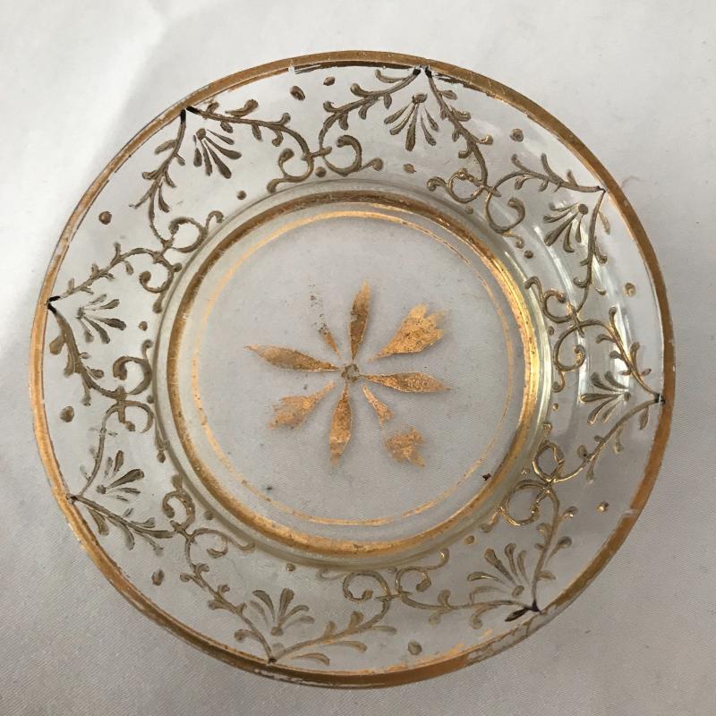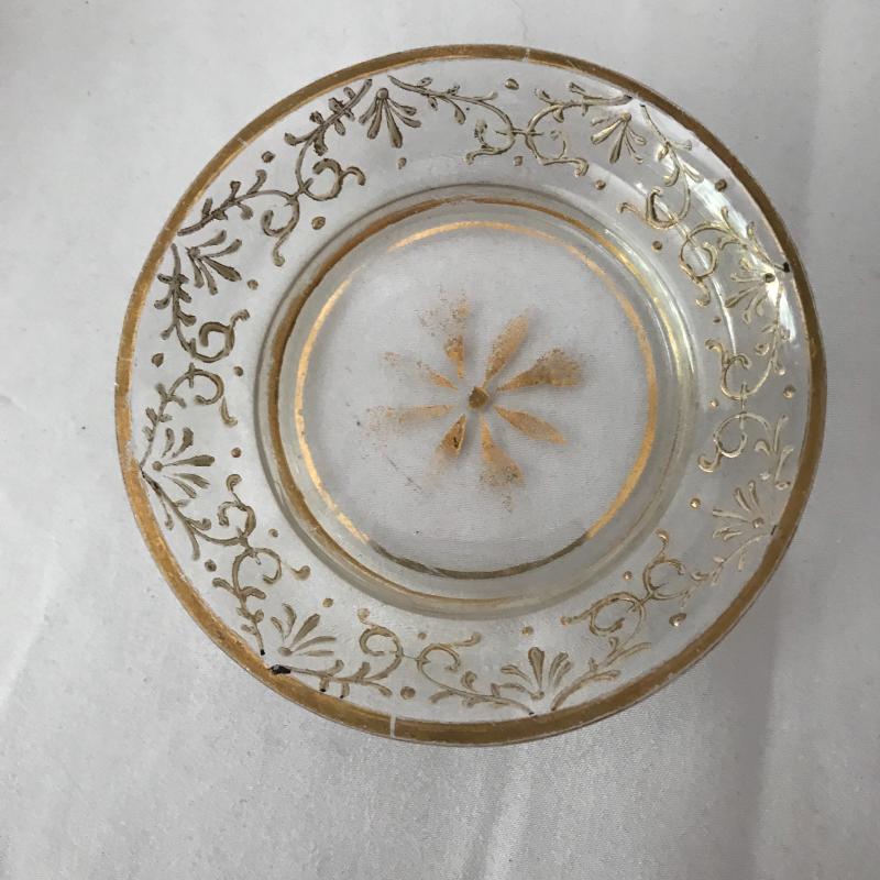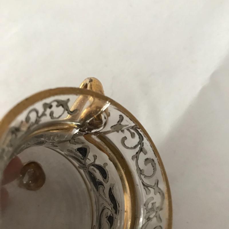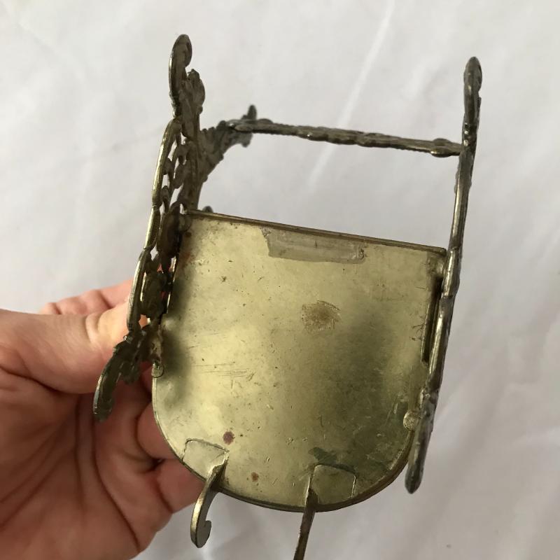 Unique antique cup and saucer sets with stands that look look sleds or benches. No markings. Crack in top of one teacup and some wear in the gold plating. Approx. 5” x 3.5 x 3.5” when displayed together. Shipping available or local pickup in Asheville, NC.
