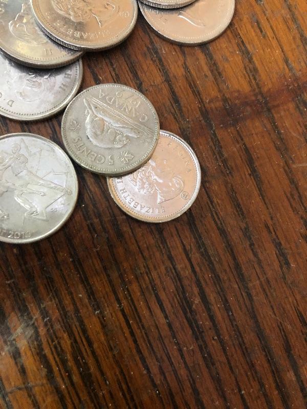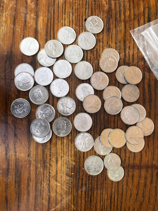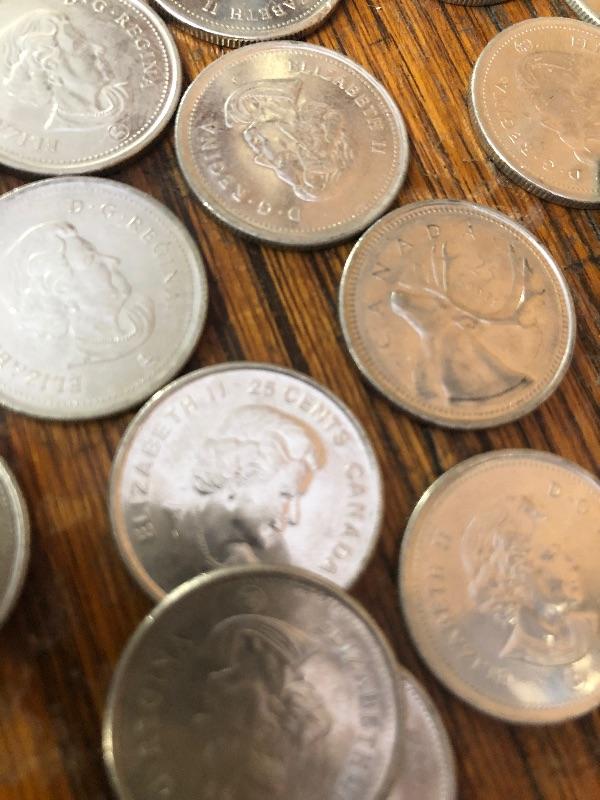 Canadian quarters and two Canadian nickels: Vintage used condition