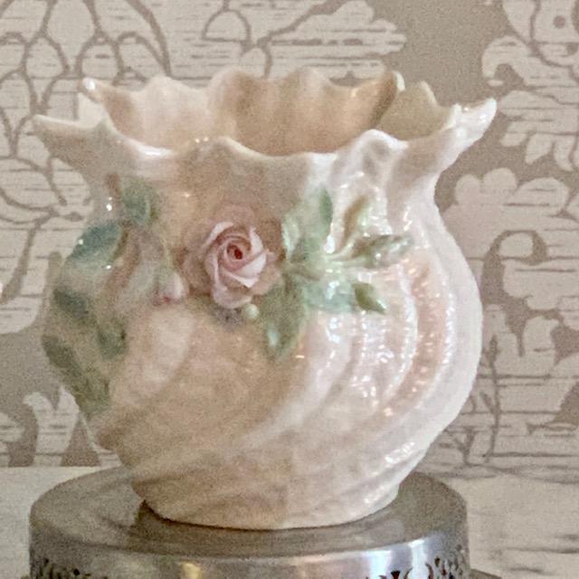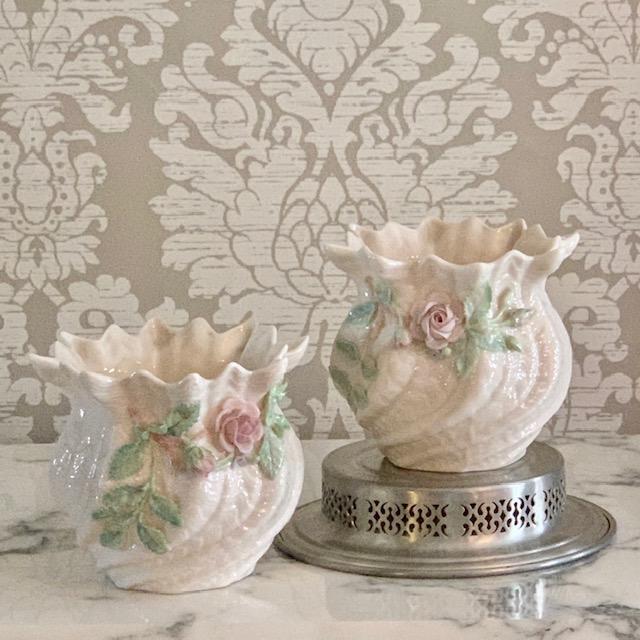 LOT 65 Belleek 2 Vases Pink & Green Roses