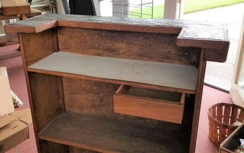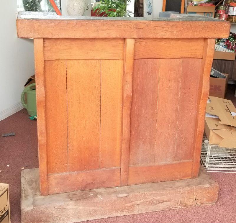 This bar matches the table in the previous lot. All one piece. Heavy. Has slate top. Measure 45" across, 17" deep at base, 43" tall. You will need help to move this.