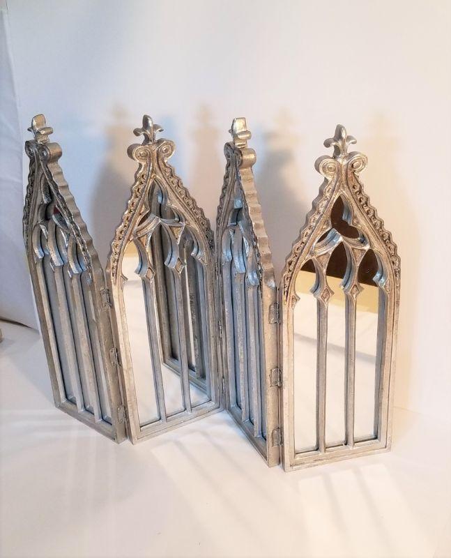 Lot #65 Decorative Mirror Table Screen - Silver Tone