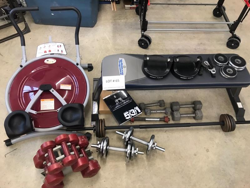 Perfect push up, bench , dumbbells, ab circlepro, weights