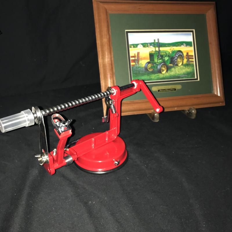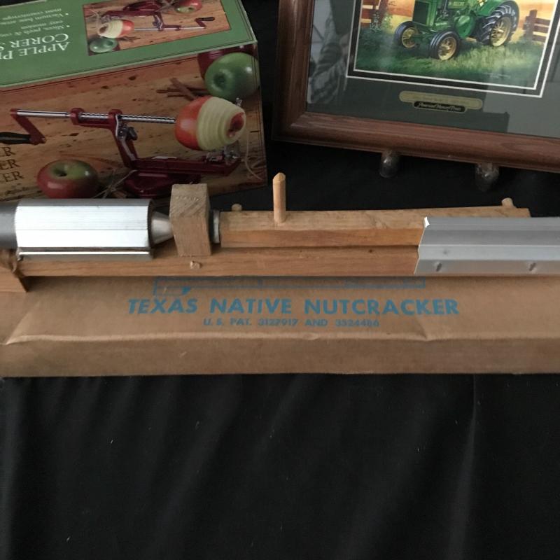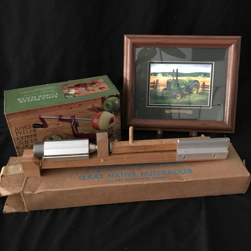 John Deere Model-D Print by Edward Schaeffer, 10” x 12”. Apple peeler is in box and unused. Also includes Texas Native Nutcracker in Box. No Shipping. Local pick up in Maggie Valley.