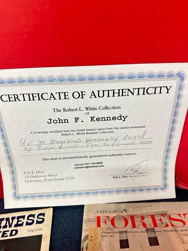 Kennedy magazines owned by JFK Secretary Evelyn Lincoln with certificate of authenticity