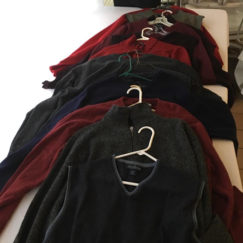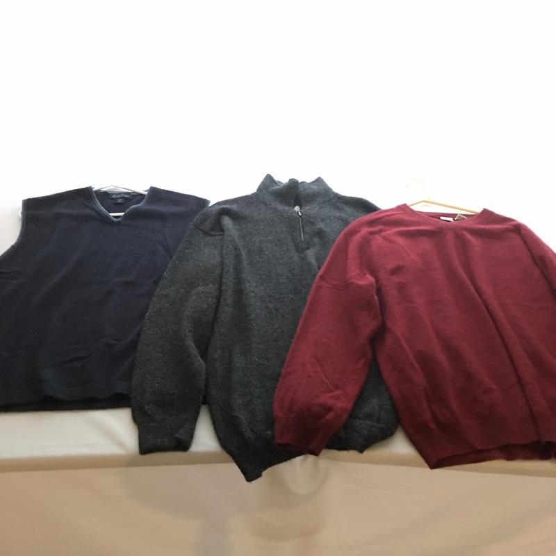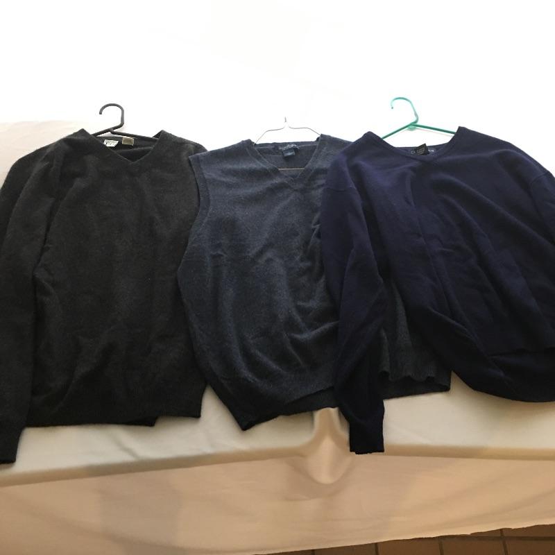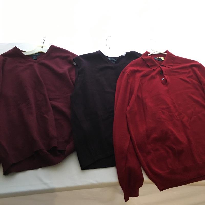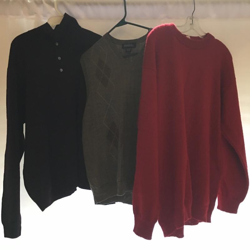 Men’s fine wool outerwear. Lot includes sweaters and vests. Brands include Brooks Brothers, FG, Chereskin and a few marked alpaca. Keep yourself warm this spring in these dapper duds. Most are size large.