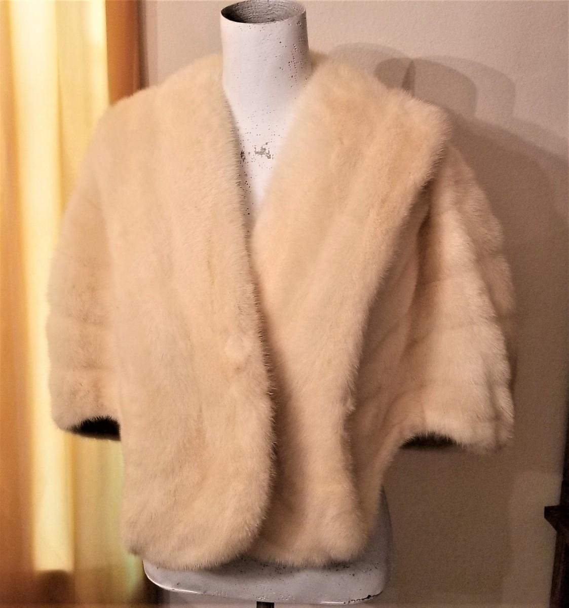 This vintage mink stole is a Winter White color and is in great condition. Nice, soft pelts, lining is pretty much like new. Would fit best on someone who is a size 10-14. It's a real beauty, and winter will be here before you know it!