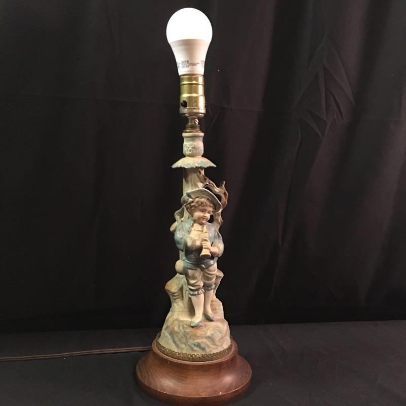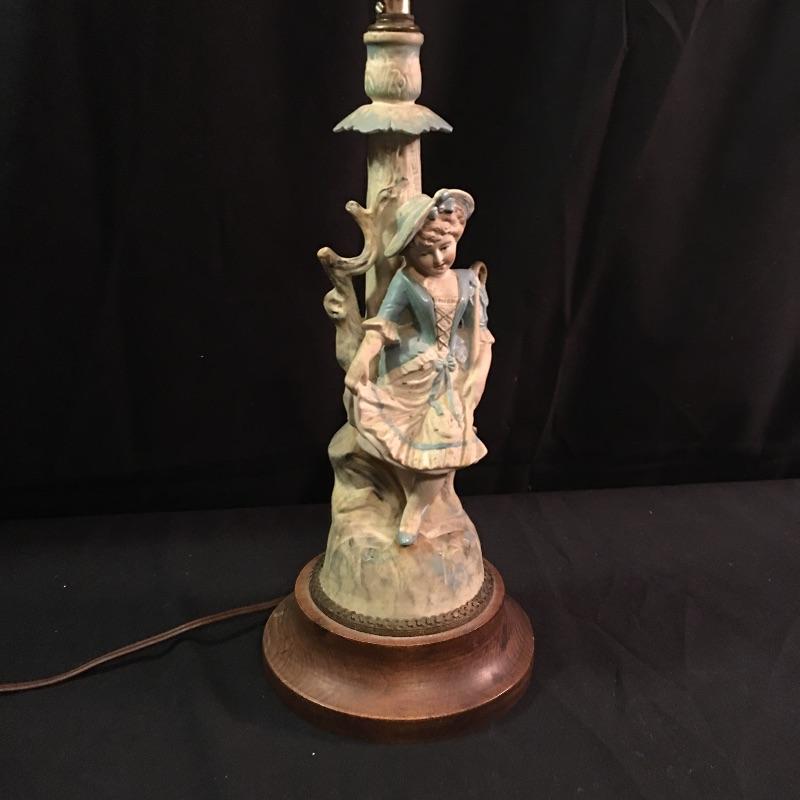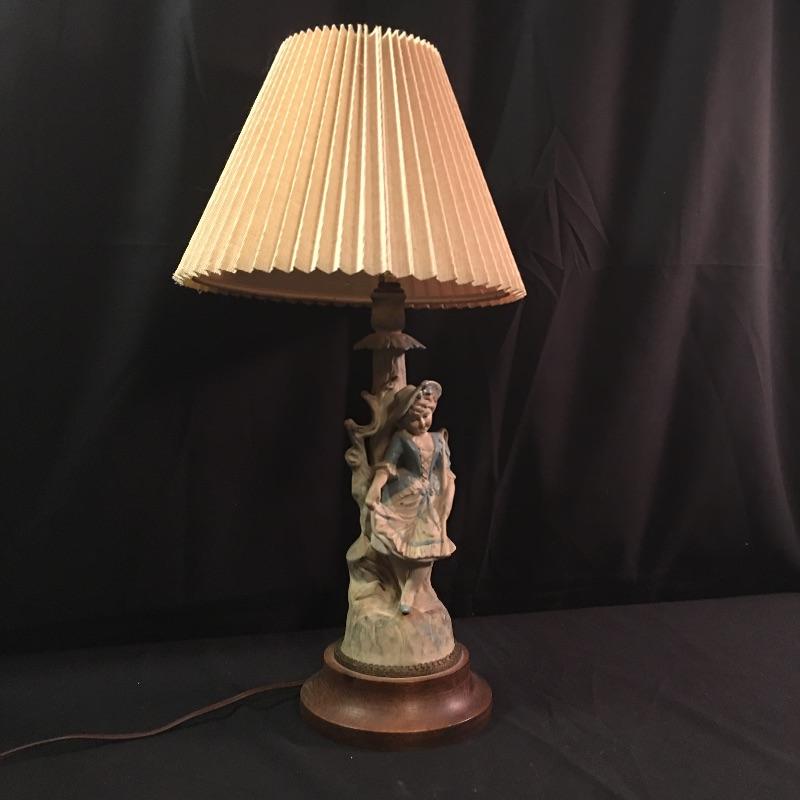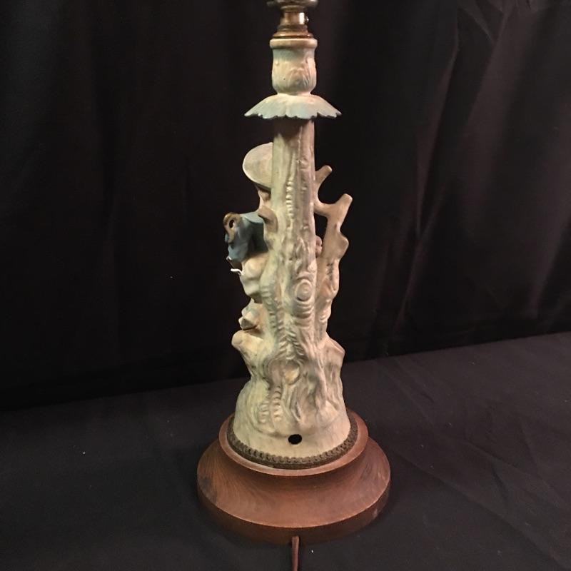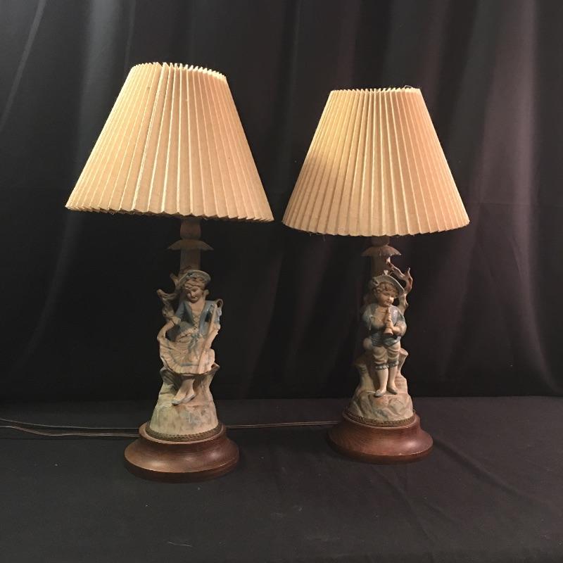 This pair of table lamps will light up your room and your face with there whimsical style. One lamp has a piece broken, see pictures. Lamps measure 6”D x 19” tall without shade. Both lamps worked when tested.
