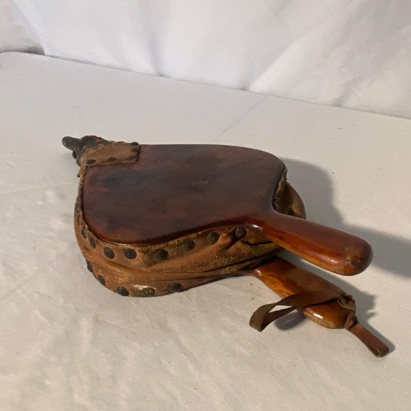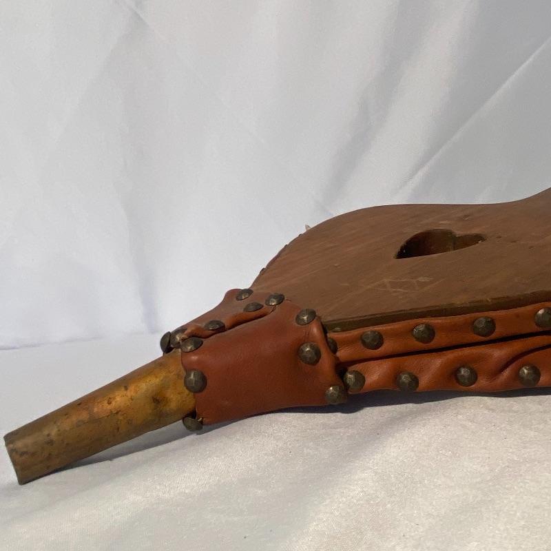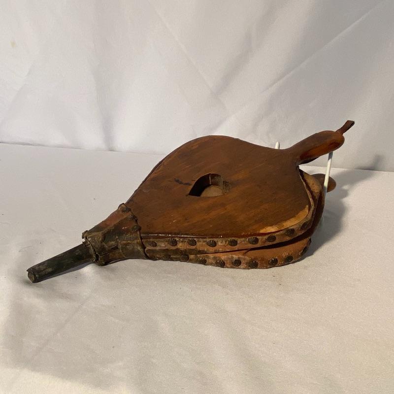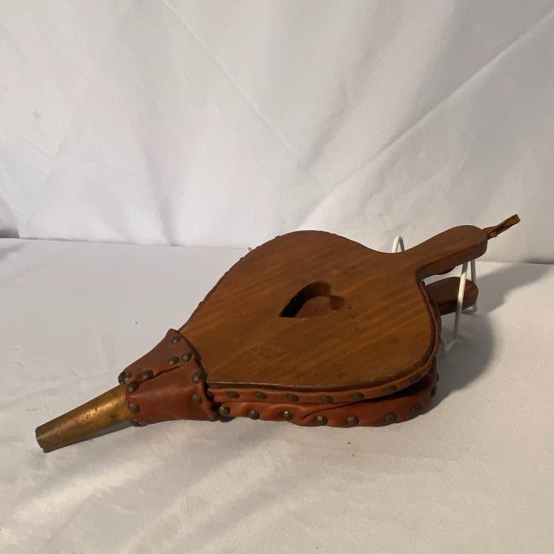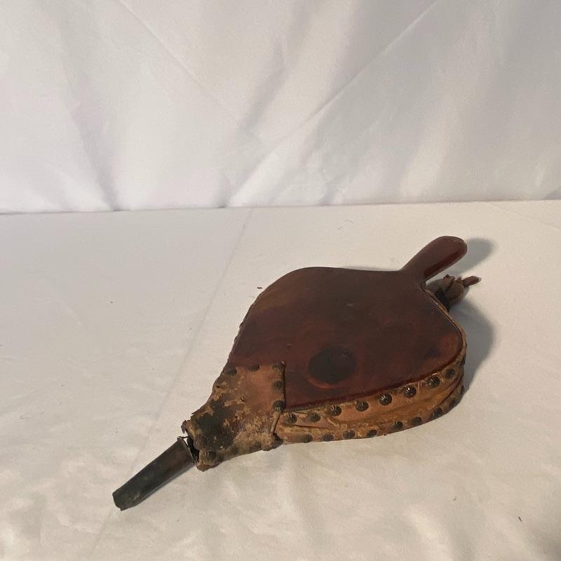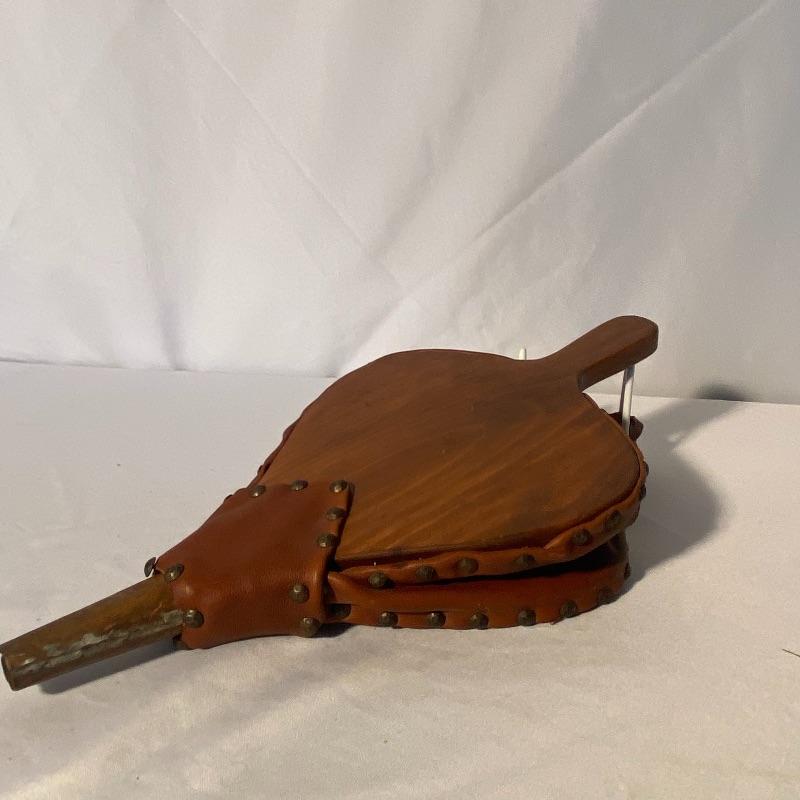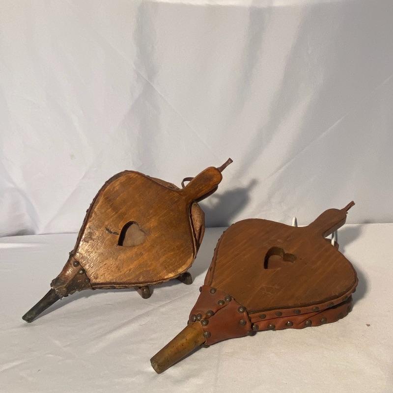 Add charm, decor, and function to your fireplace! Beautiful wood and leather details. One in good condition, good airflow. Measures 19” x 10”. One has a broken nozzle, still able to produce airflow. See photos. Measures 18.5” x 9”. Shipping available.