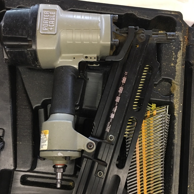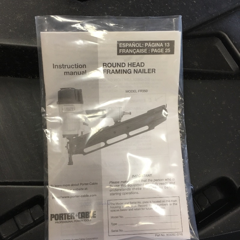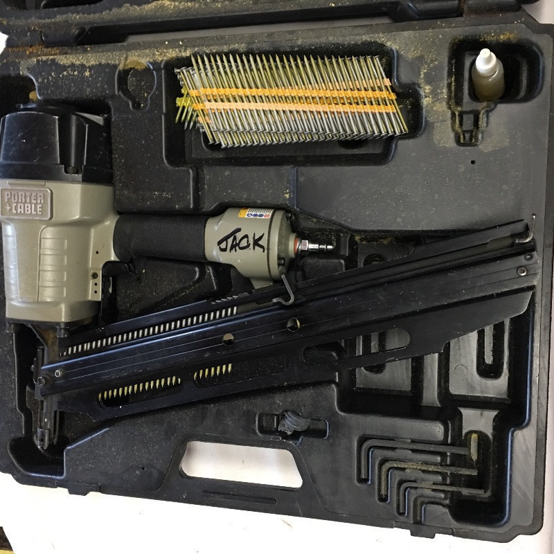Porter Cable round head framing nailer comes complete in case with instruction manual and lots of nails.