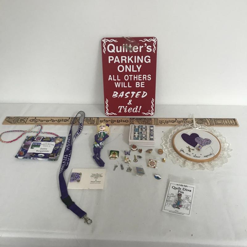 Lot contains pins, plaques, special wood ruler and more. Start or add to your growing collection. Local pick up only.