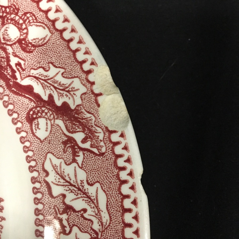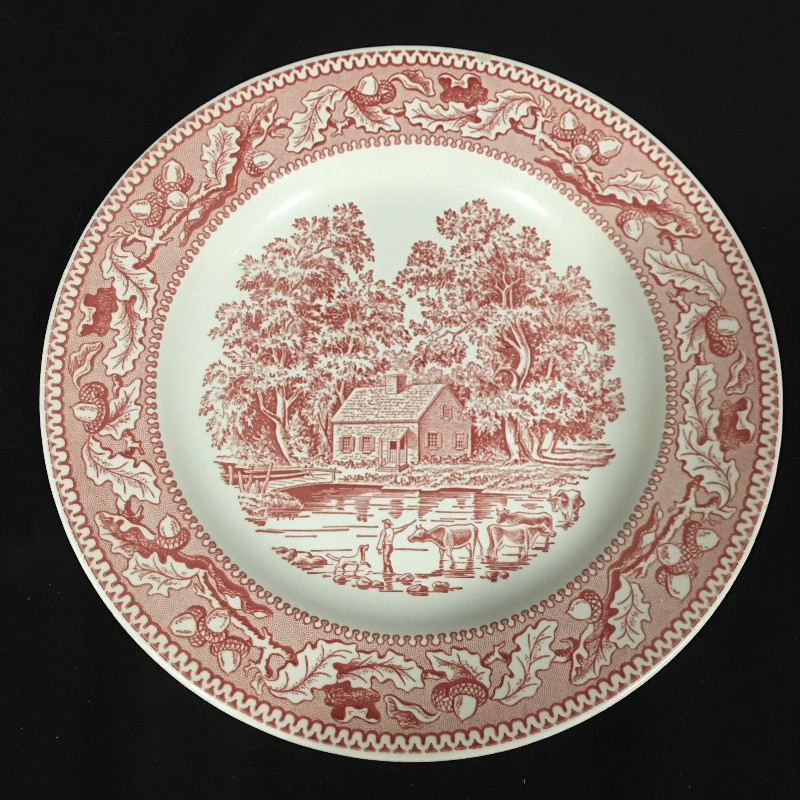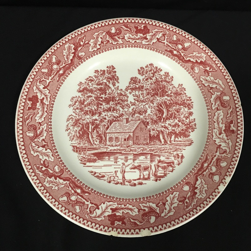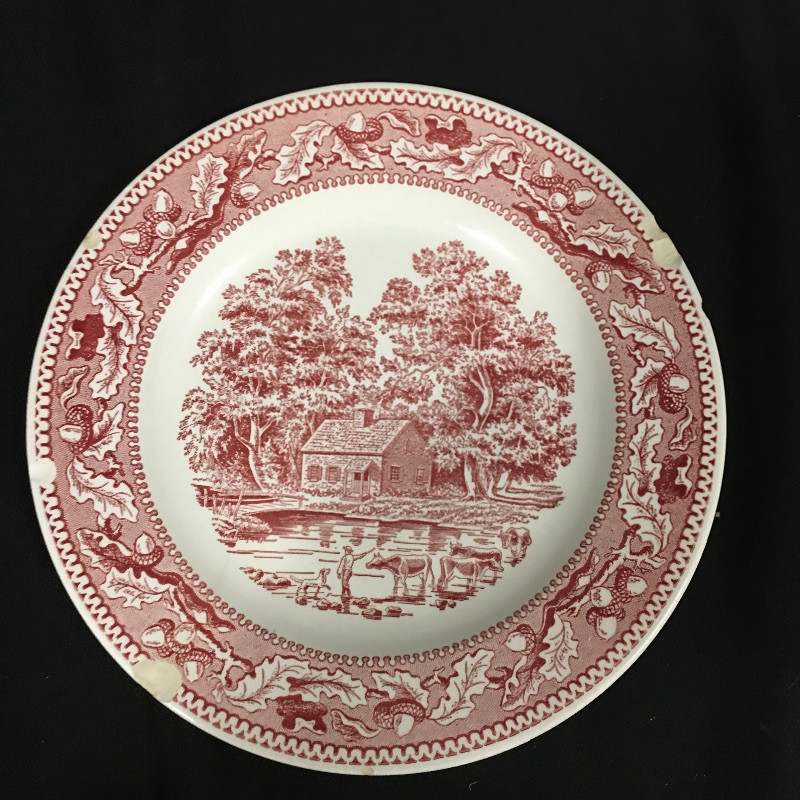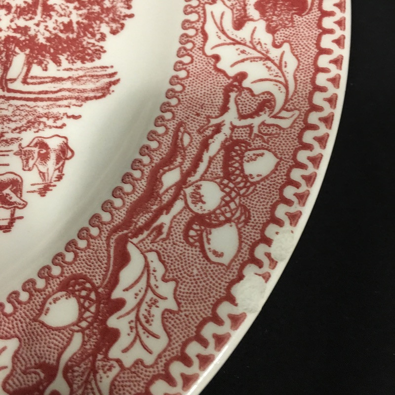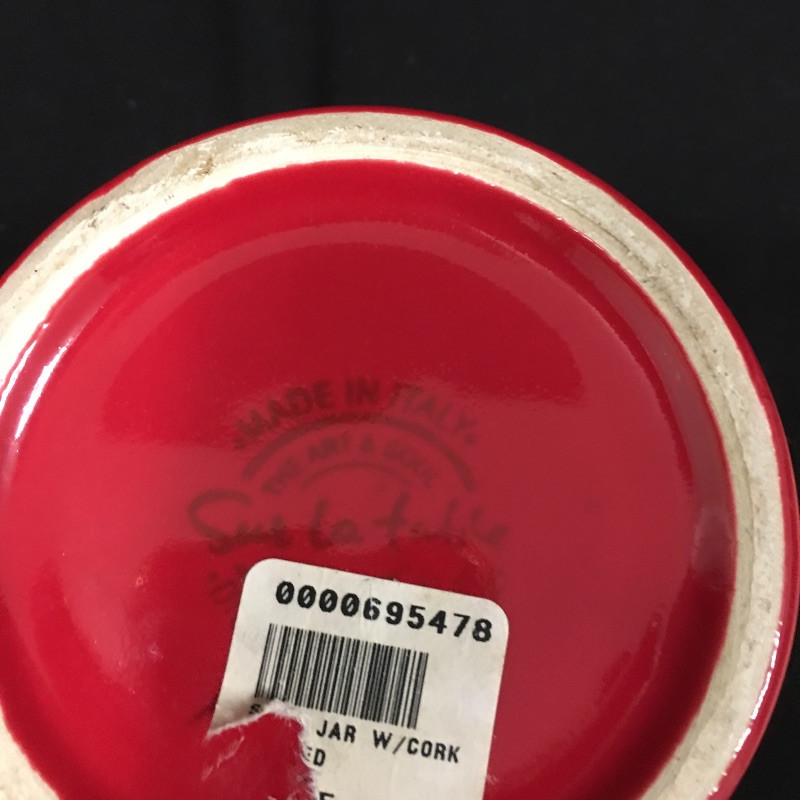 Add some color and zing to your dinner table with this nice collection of red themed items. Included are three plates, spoon rest, small canister and a creamer and sugar bowl. Two plates have chips, see pictures. Plates measure 10”D.