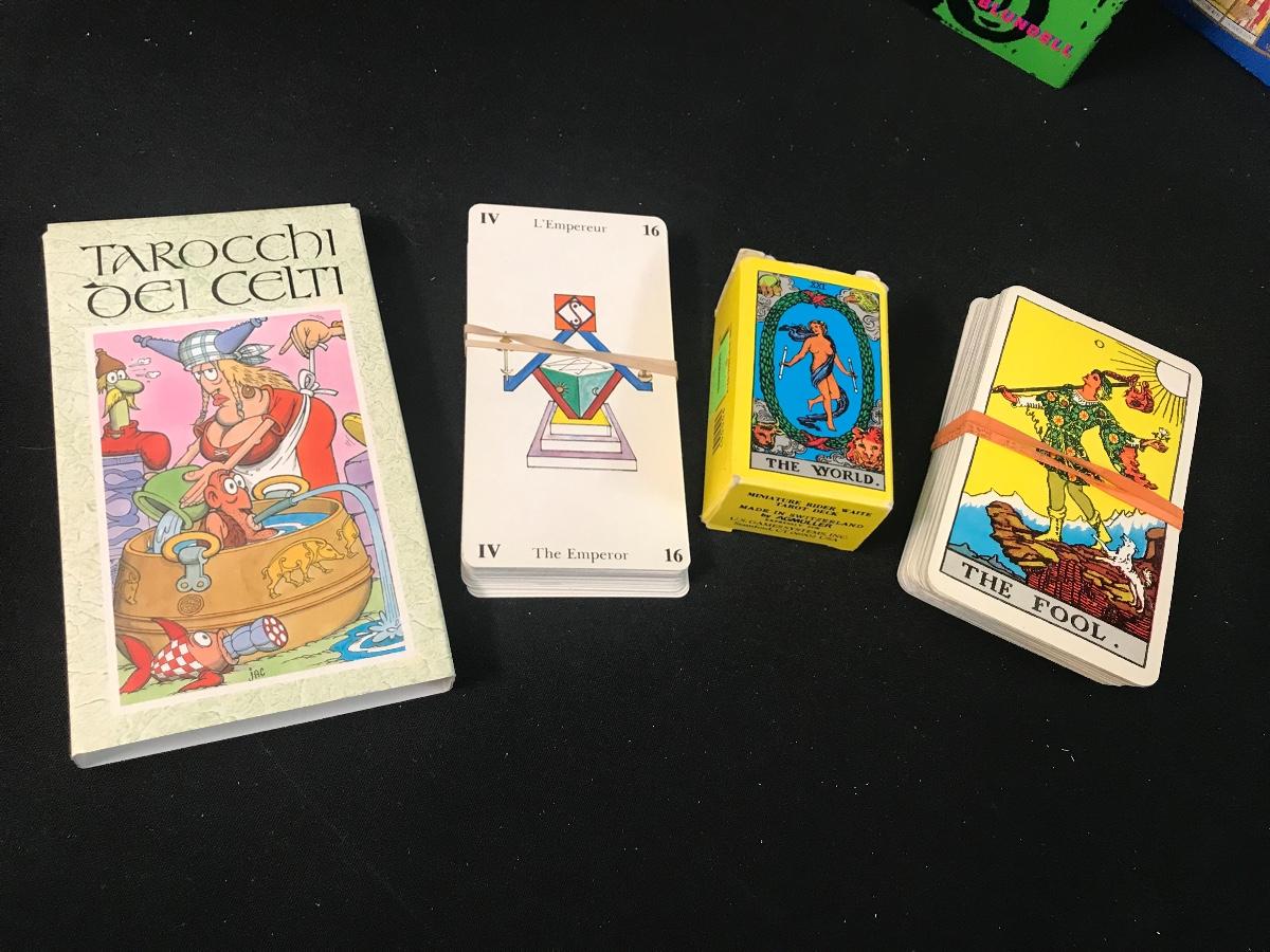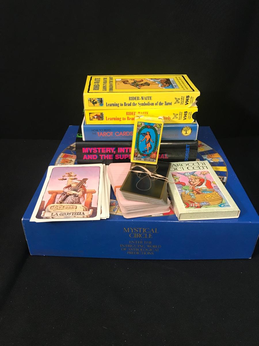 Tarot, Astrology, Supernatural collection - Tarot cards, videos, books, game & more. Please see all pictures as they are the best representation of the items. The pictures show condition, measurements if taken, and what is included in the lot. Due to the large amount that we photograph and the time frame, we are not always able to take measurements. All items unless noted, are pre-owned and have been used. If you purchased furniture, you must bring help. We do not allow one person to carry large furniture out on their own. Bring help, tools and a truck for the safety of our client’s homes, and your personal safety. Company policy. Thank you.