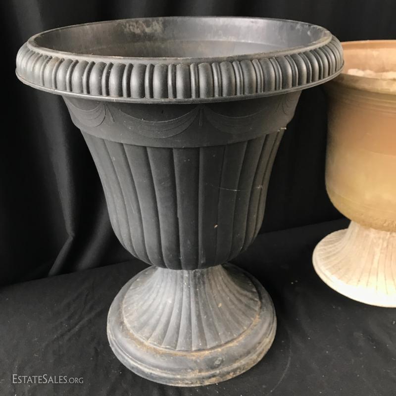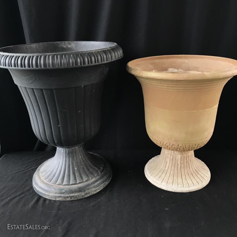 Two plastic planters for inside or out. Black one measures 19”d x 21”h, beige one is 16”d x 18”h. No shipping. Local pick up only in Asheville, NC.
