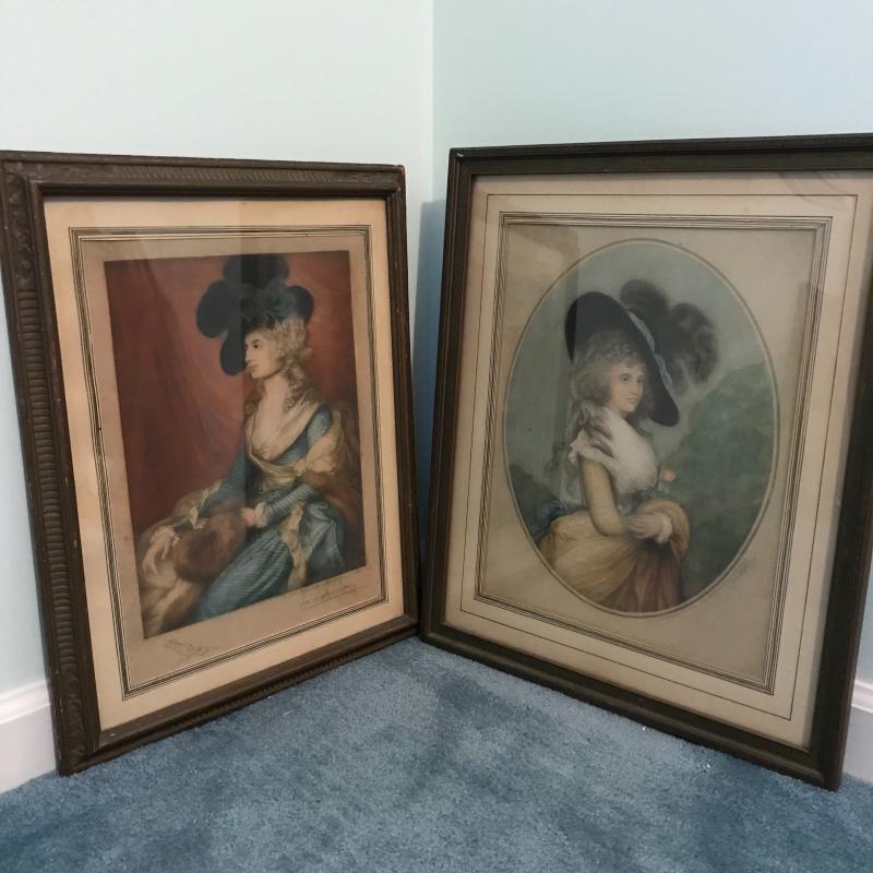 Two lovely S. Arlent Edwards Victorian era portraits, the larger one has writing on the back stating the" Duchess of Devonshire, Gainsborough." The frame measures 17.25”x20.5”. The smaller’s backside also appears to say Gainsborough as well, but the rest of the title is unconfirmed. There is more writing by the signatures that is illegible. See photos for signatures and labels. Local pick up and shipping available. Please obtain a quote from UPS prior to bidding as art can be costly to ship.
