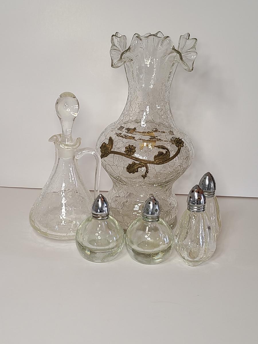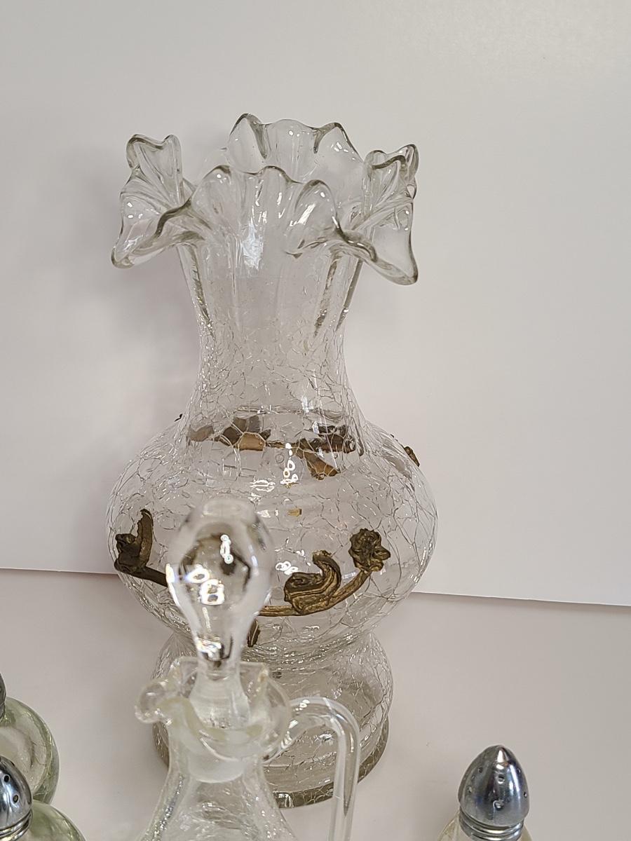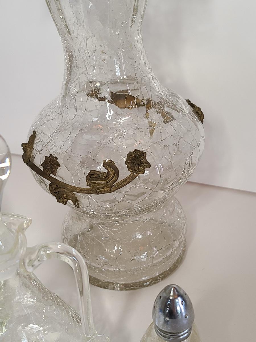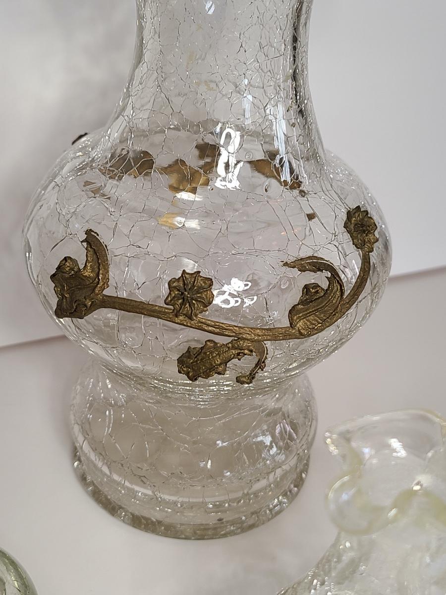 Lot 65: Vintage MCM Clear Crackle Glass Flared Vase and More