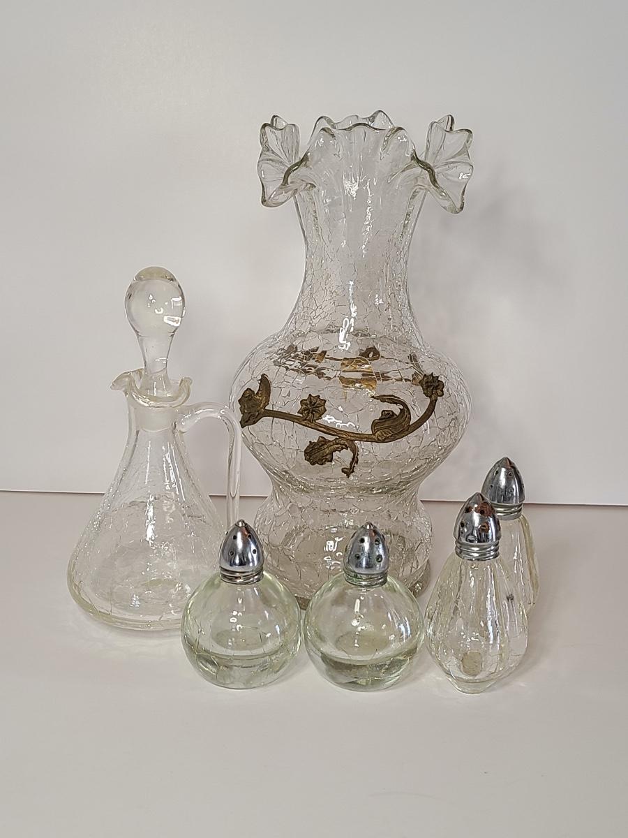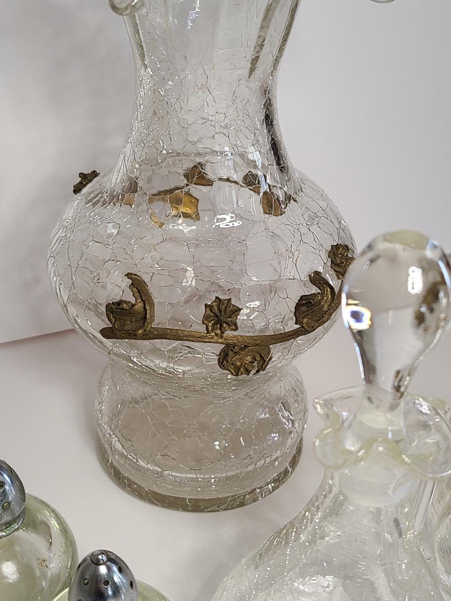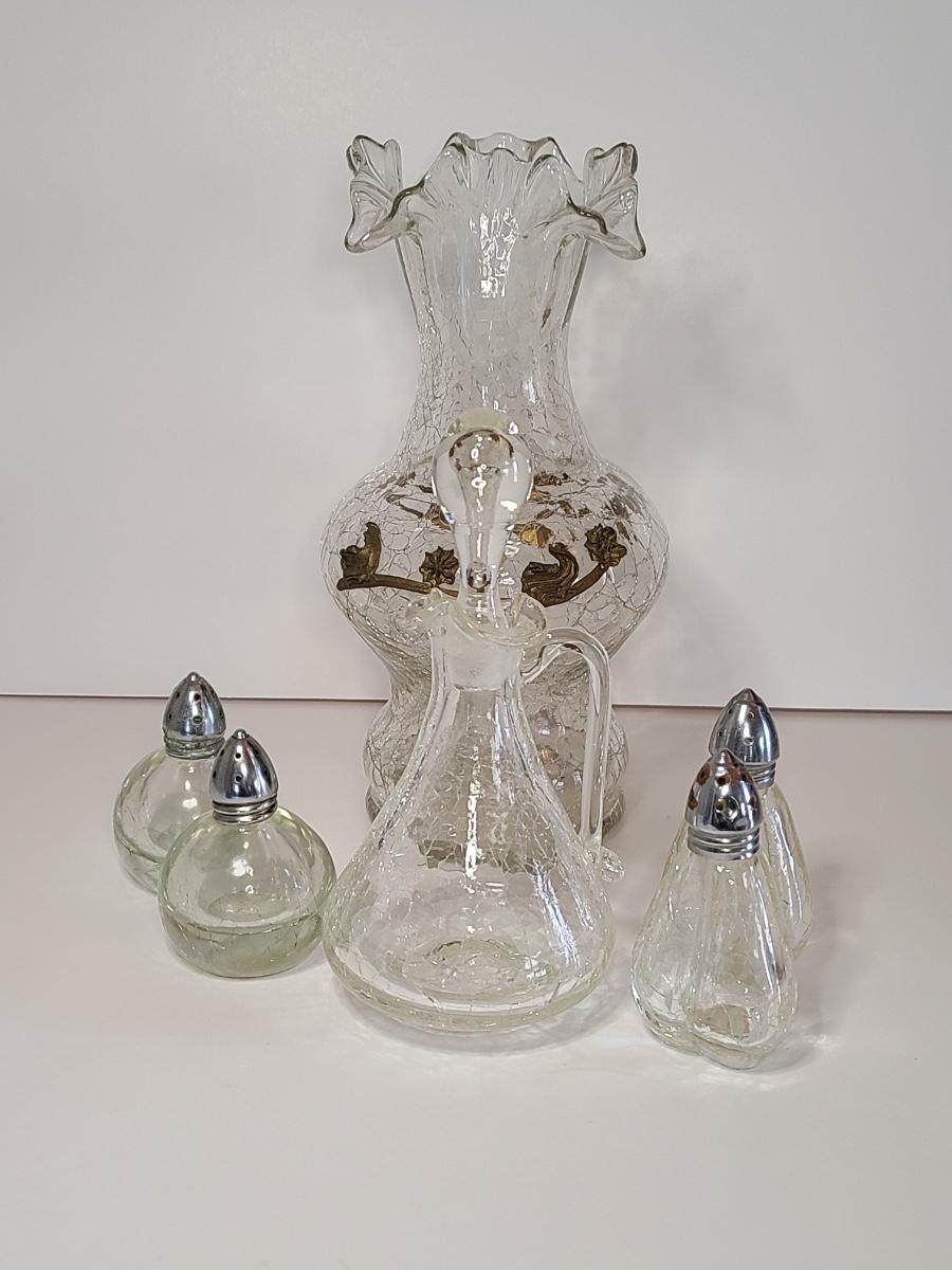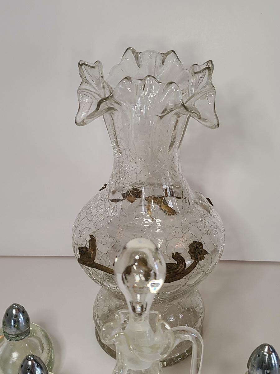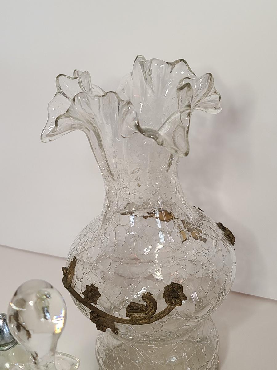 Lot 65: Vintage MCM Clear Crackle Glass Flared Vase and More