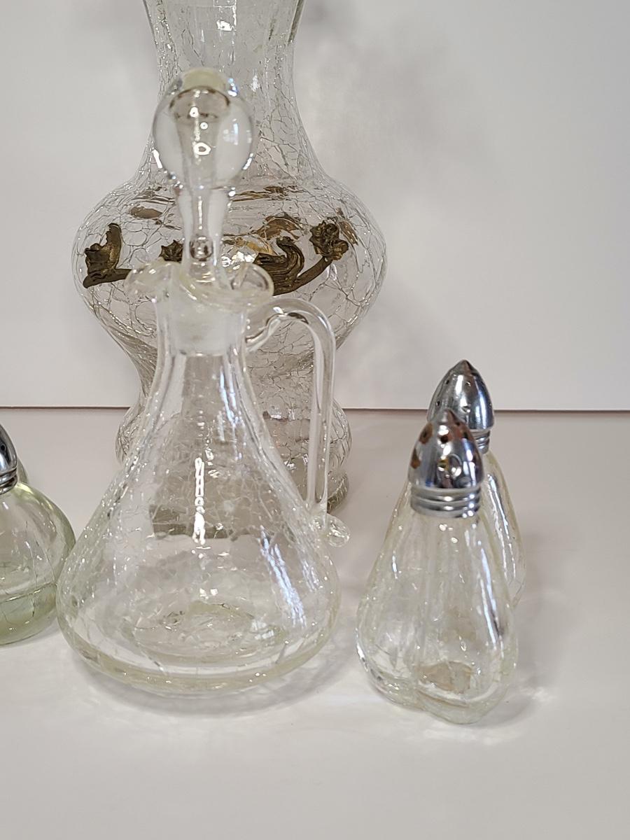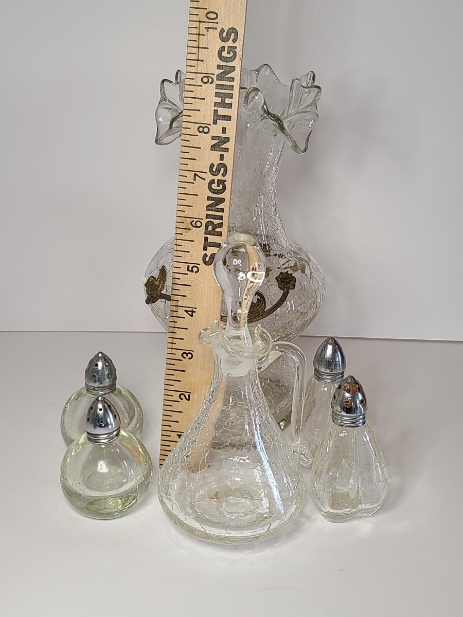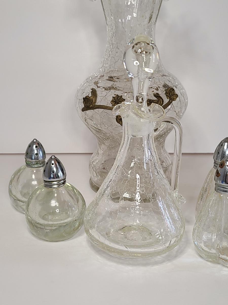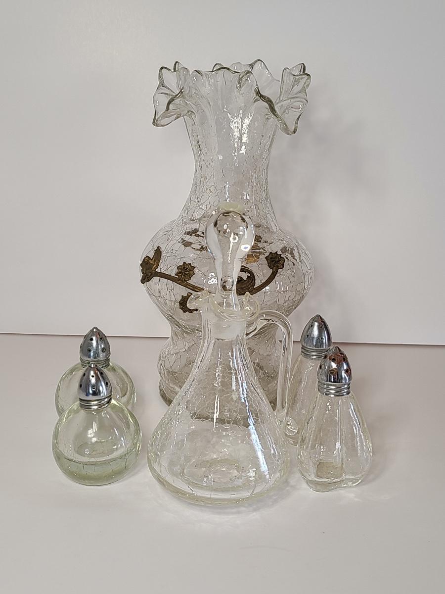 Lot 65: Vintage MCM Clear Crackle Glass Flared Vase and More