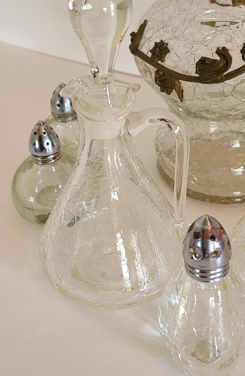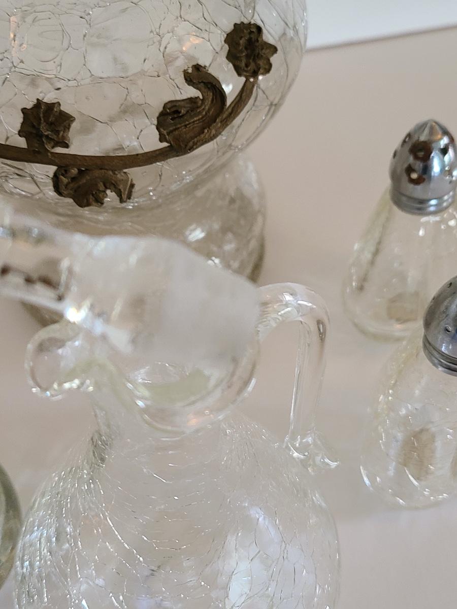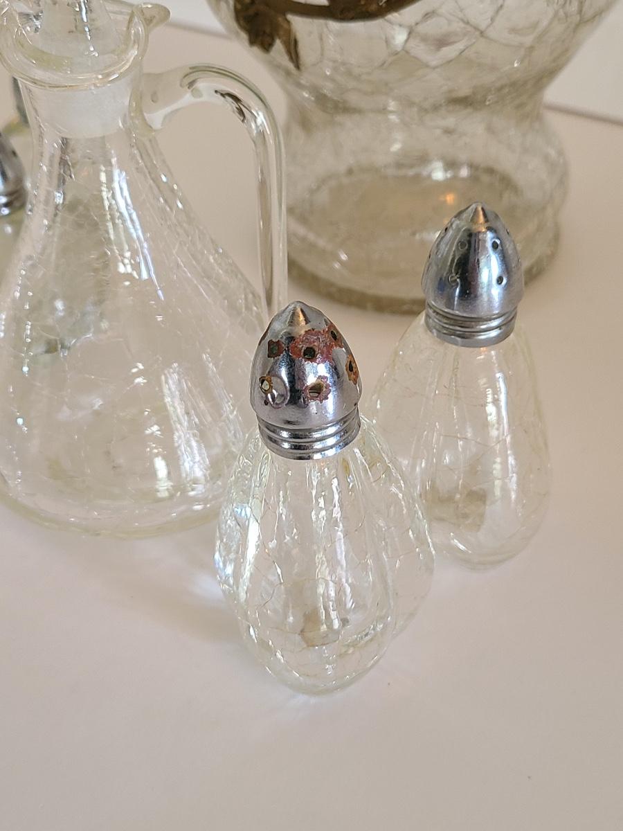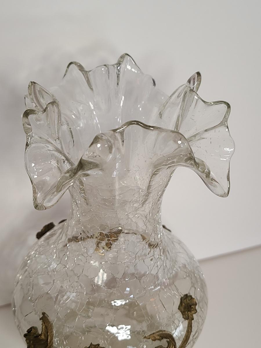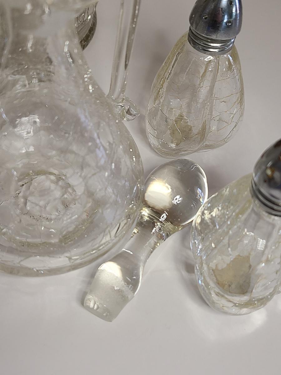 Lot 65: Vintage MCM Clear Crackle Glass Flared Vase and More