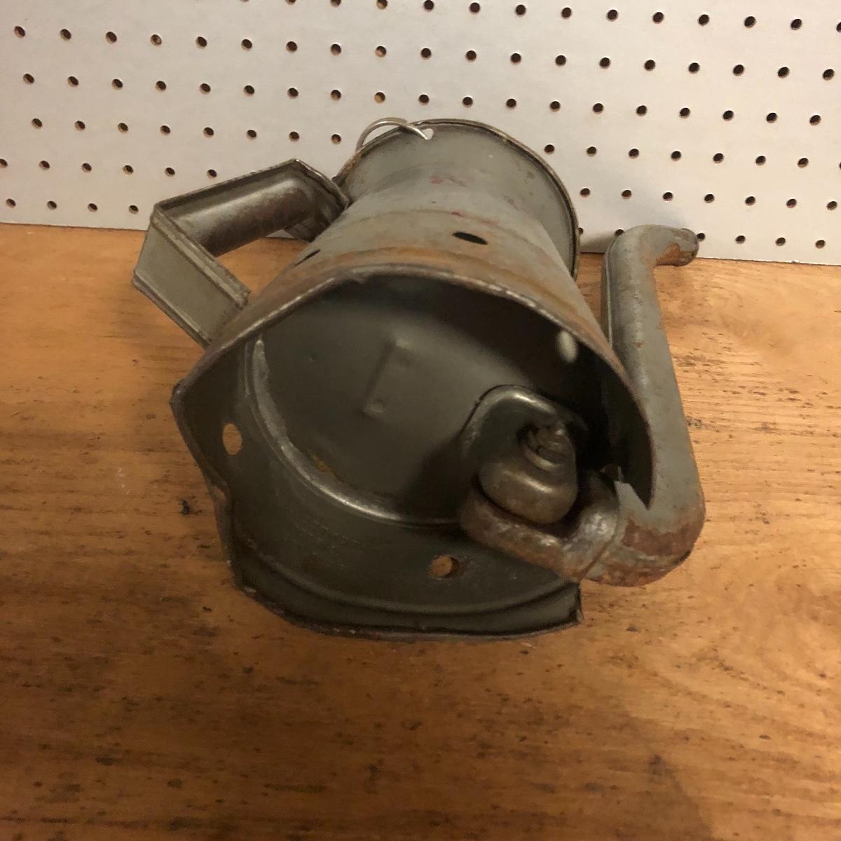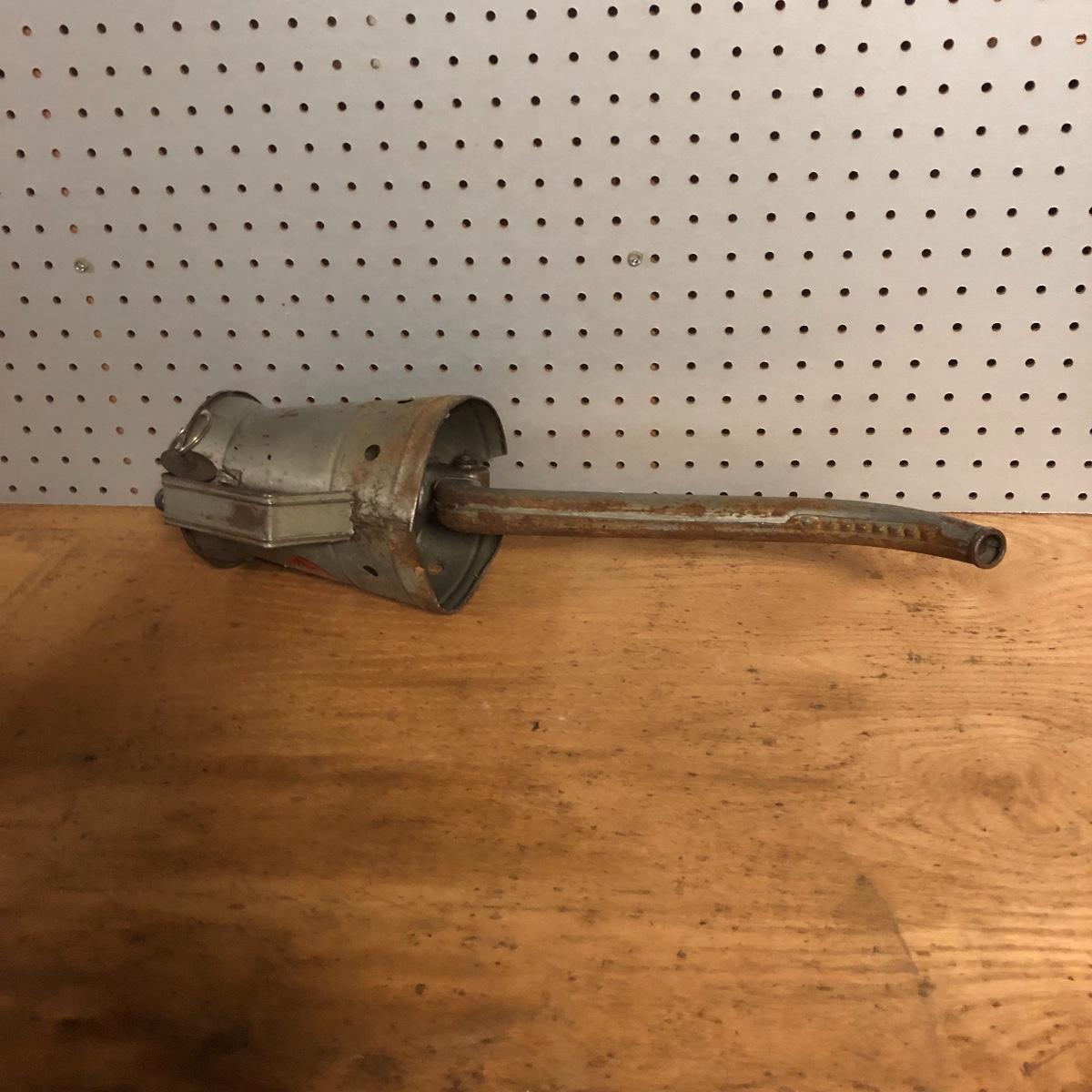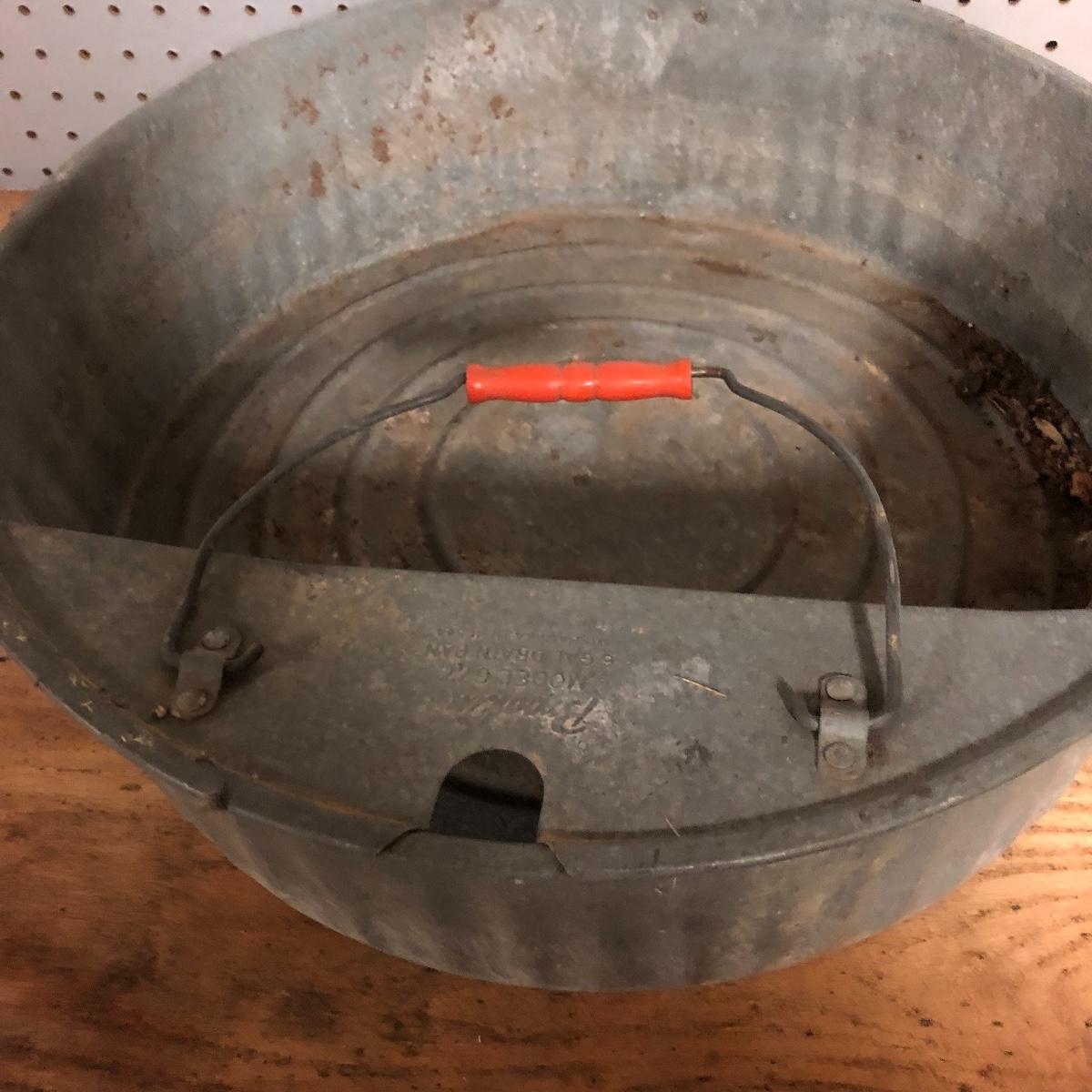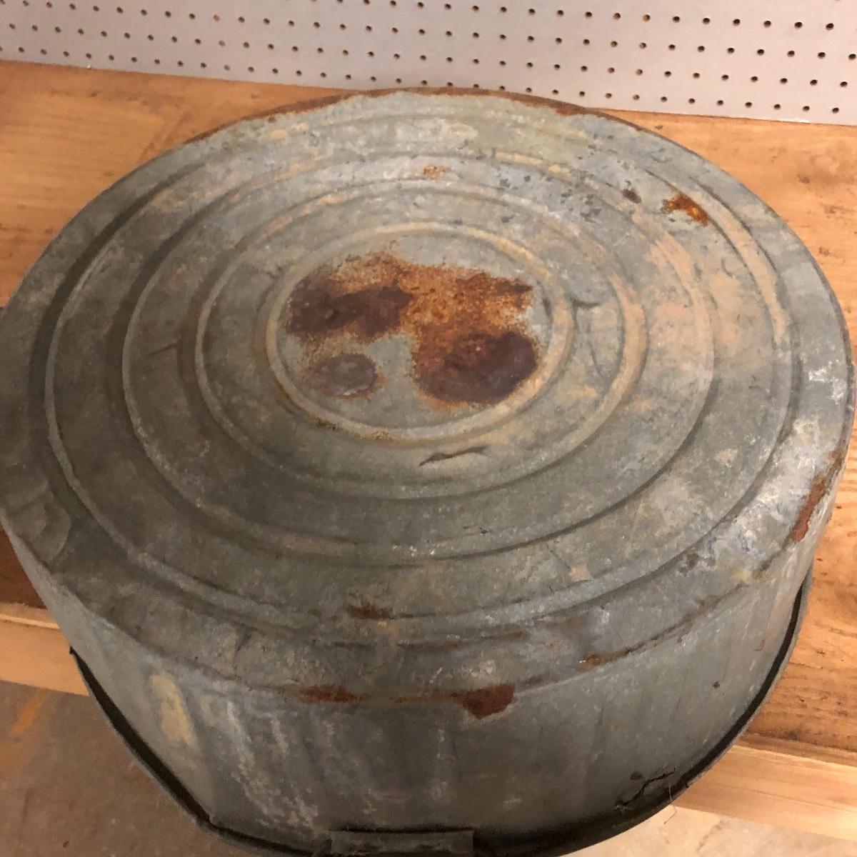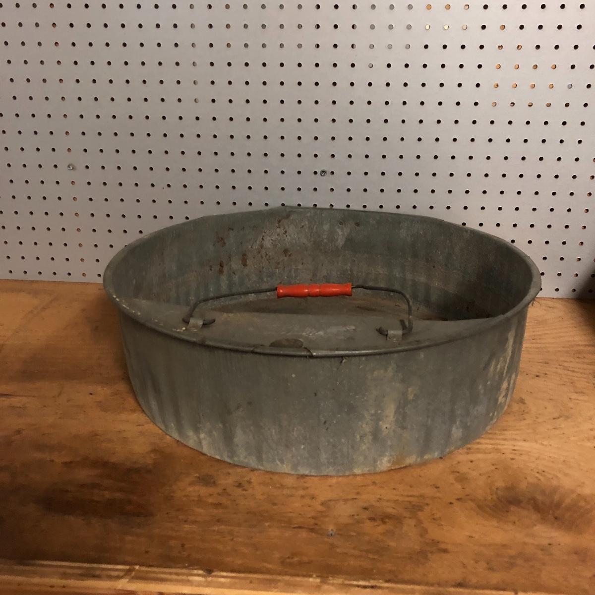 Go old school with this vintage pair. The lot includes one Brookins one quart oil can and a Brookins drain pan. Both items have some scratches and dents, but overall look good. Drain pan measures 19”D x 6”.