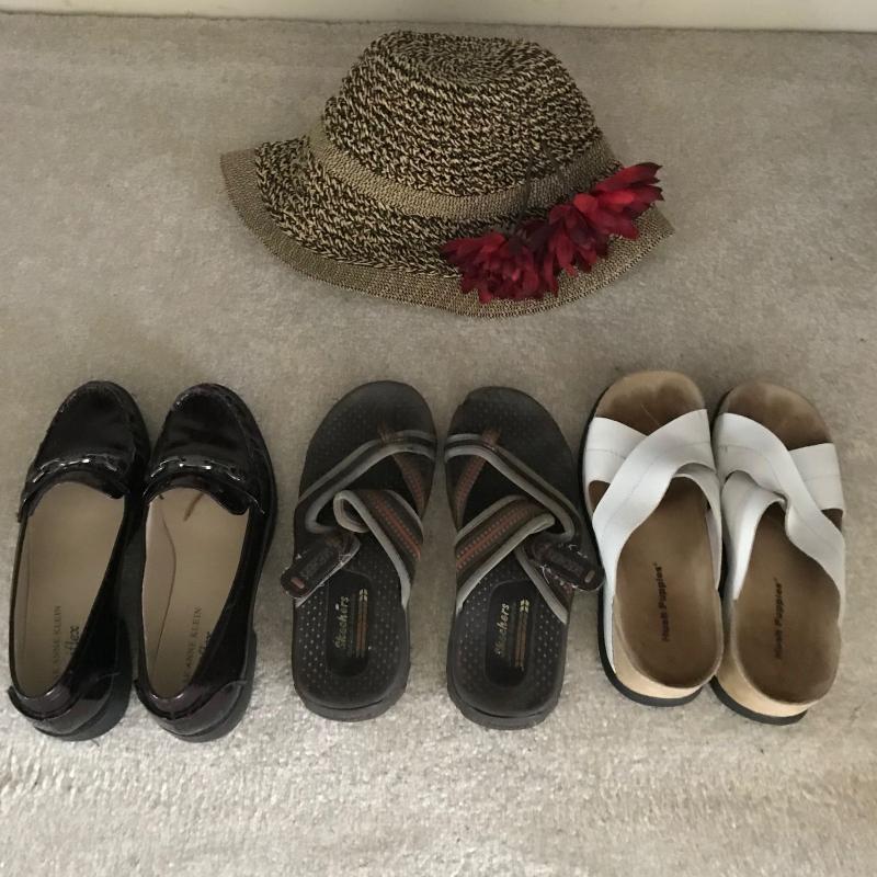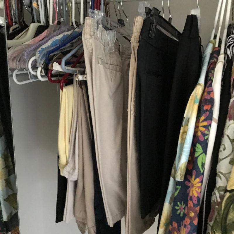 Ladies clothing, purses, shoes, scarves and jackets. Tops are mainly size medium with some Petite Medium. Pants/Shorts are mainly size 8 or 10. Lot includes a London Fog Trench, a nice red lined wool coat and a Liz Claiborne golf sweatshirt among many other nice clean garments. Three pairs of shoes are size 6. You’ll also find several purses and a hat. Great way to add some nice pieces to your wardobe. No shipping.